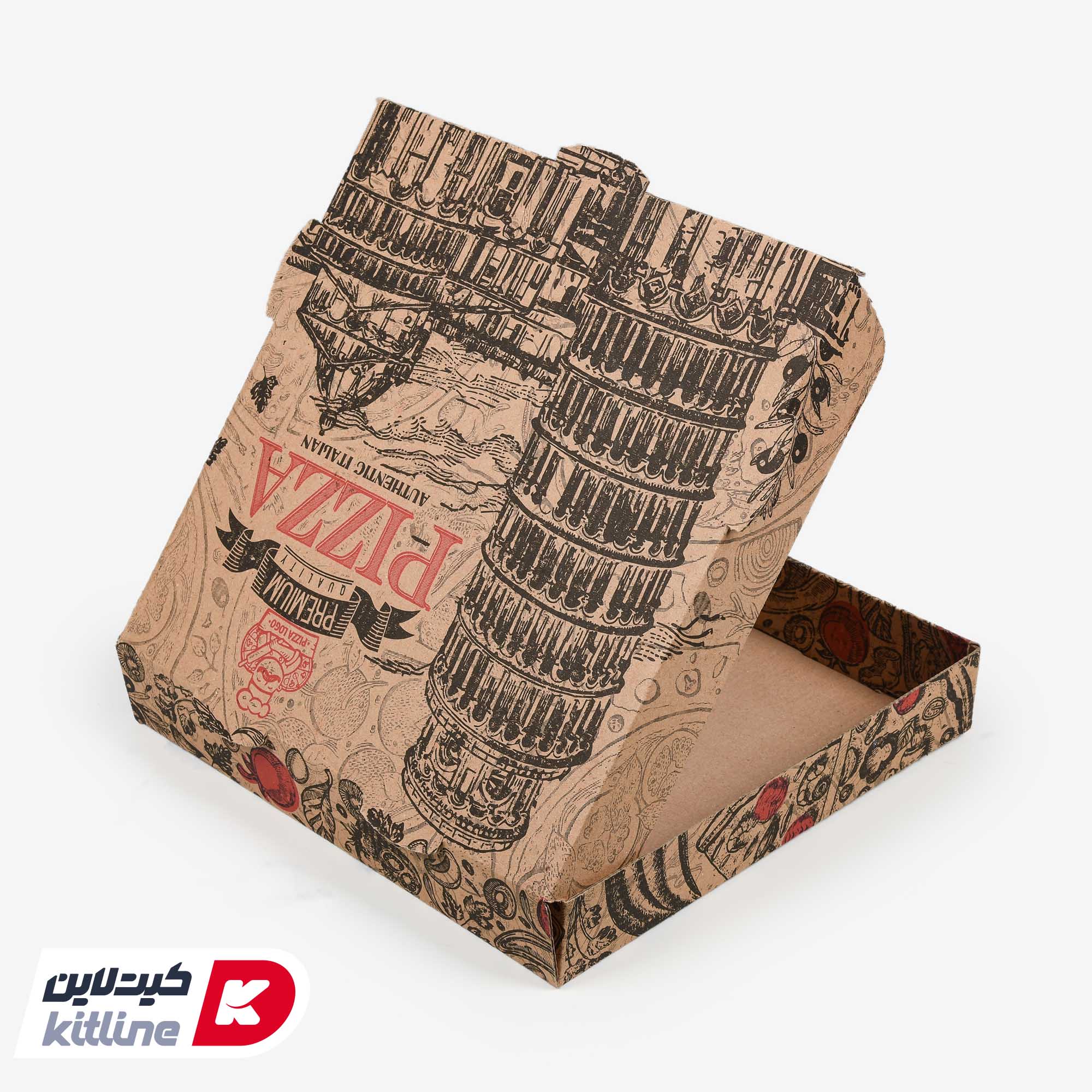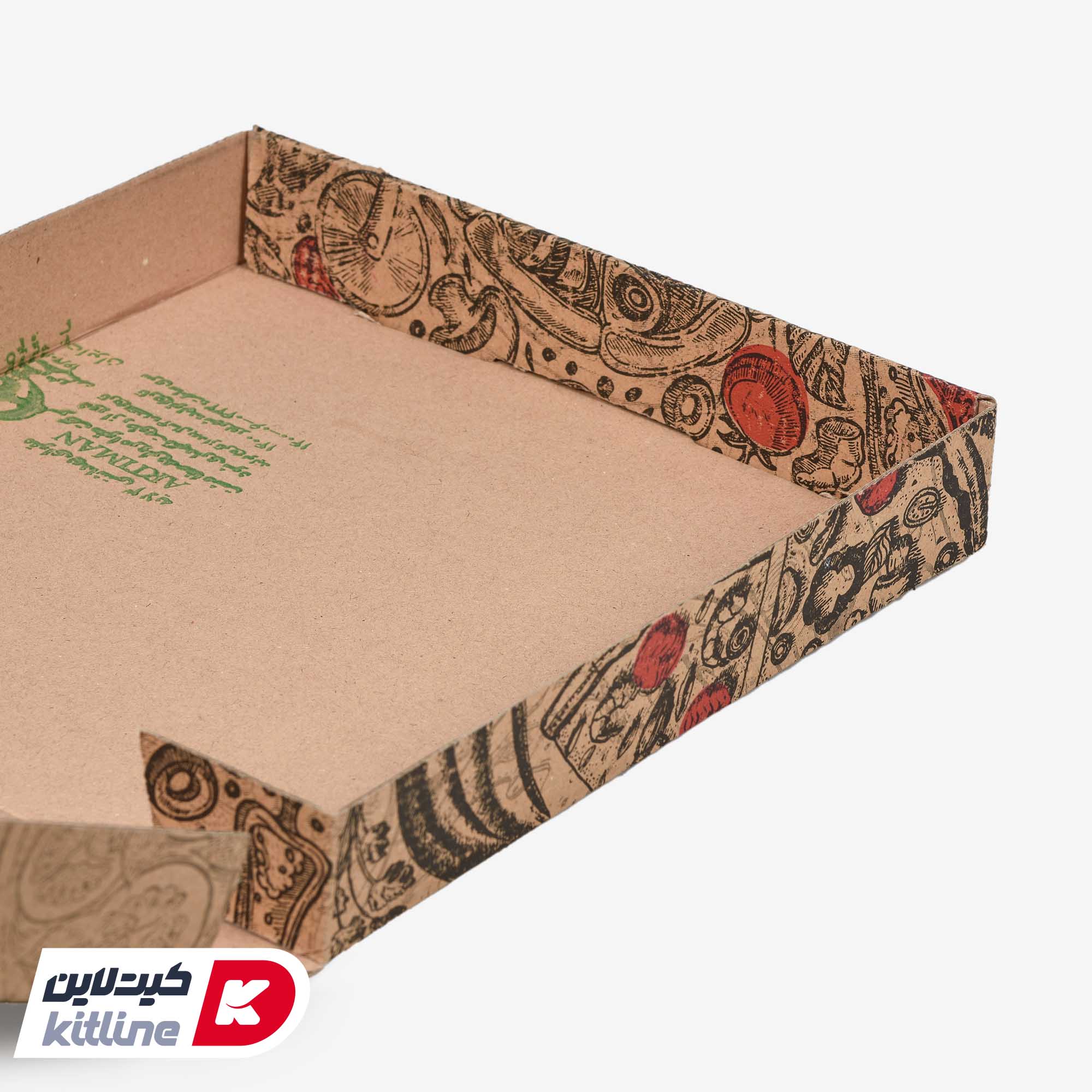 • ابعاد جعبه پیتزا طرح پیزا: ۳۴×۳۴ سانتیمتر