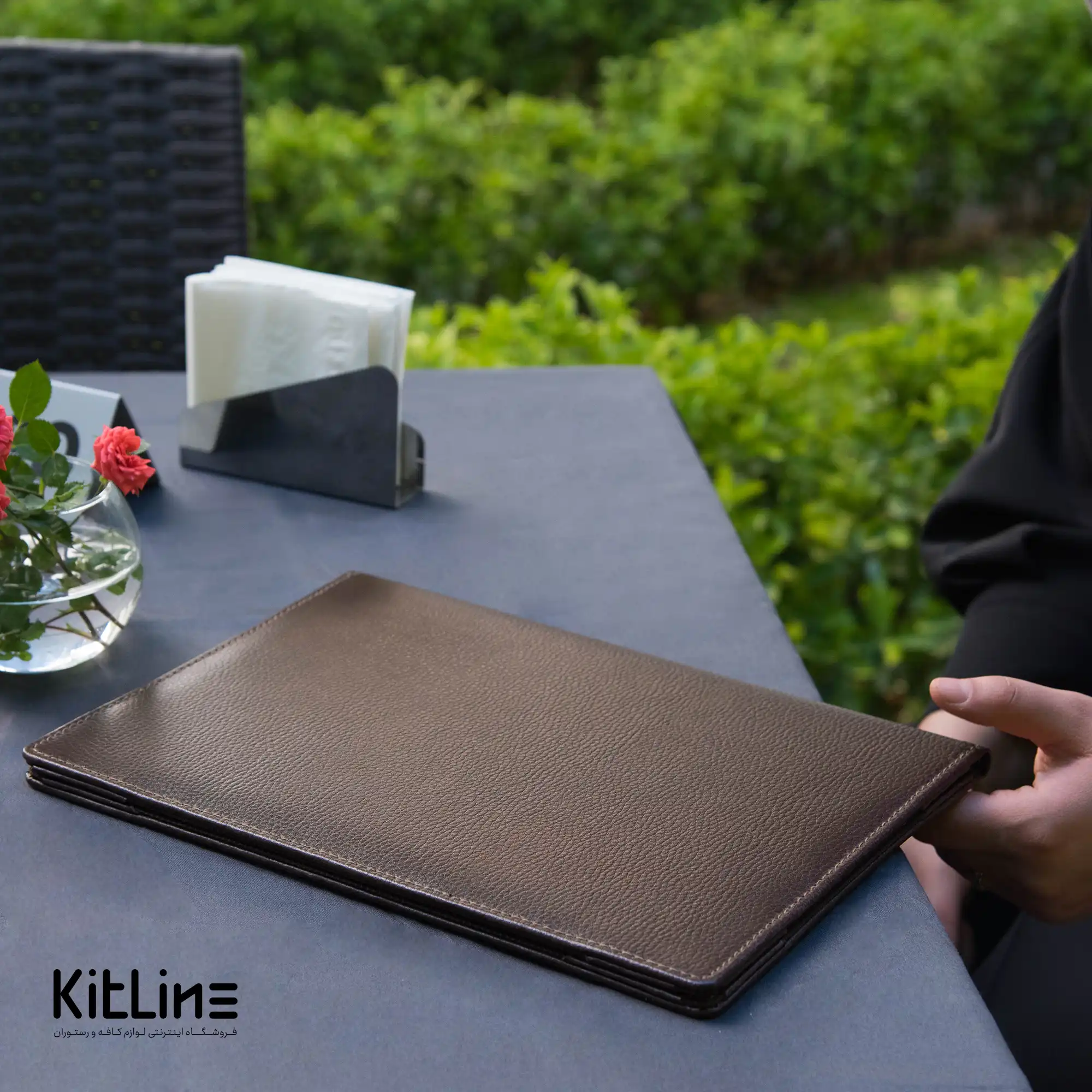 جلد منو چرمی سایز A4 قهوه ای از برند Kitchentech