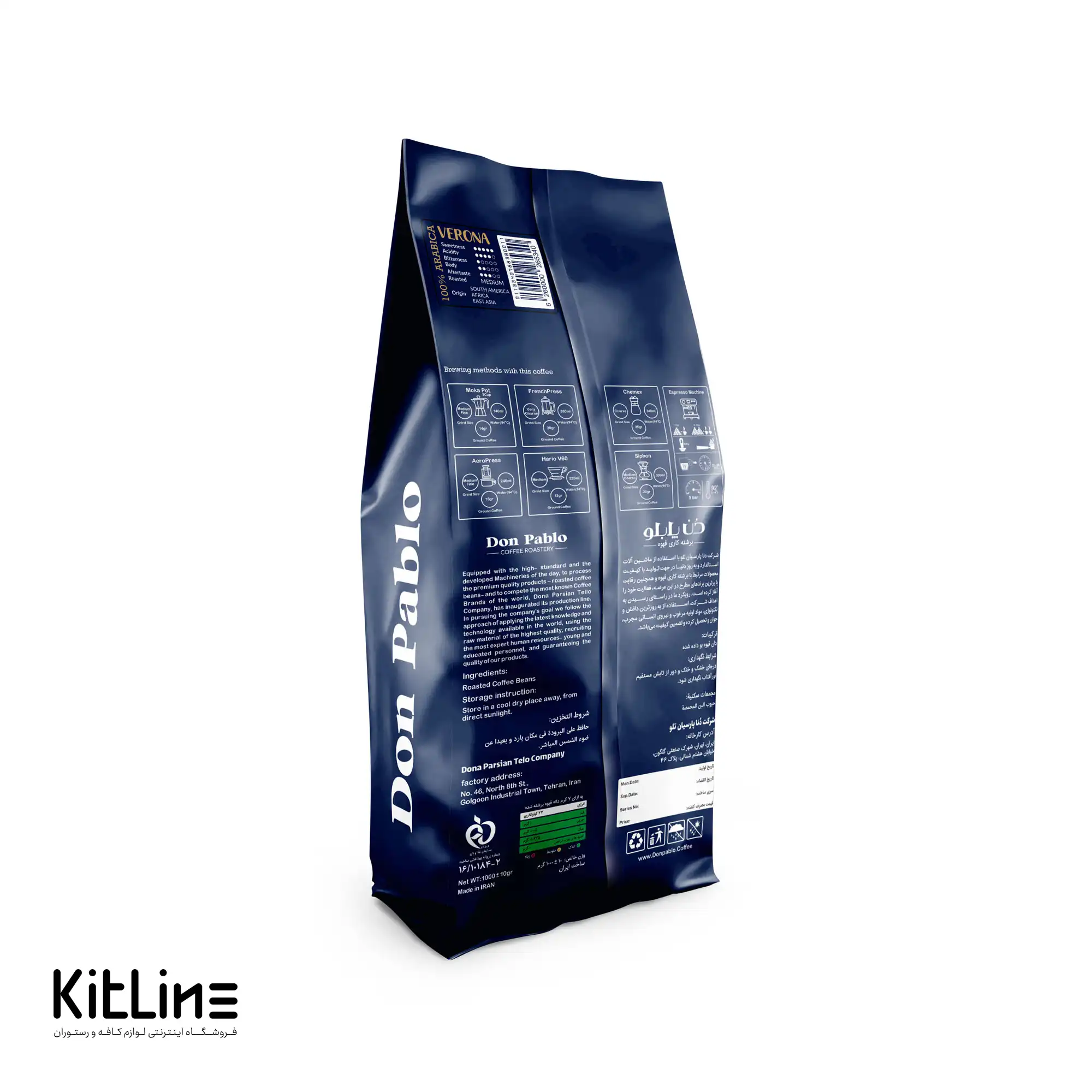 دانه قهوه ۱۰۰٪ عربیکا ترکیب ورونا دن پابلو ۱ کیلوگرمی