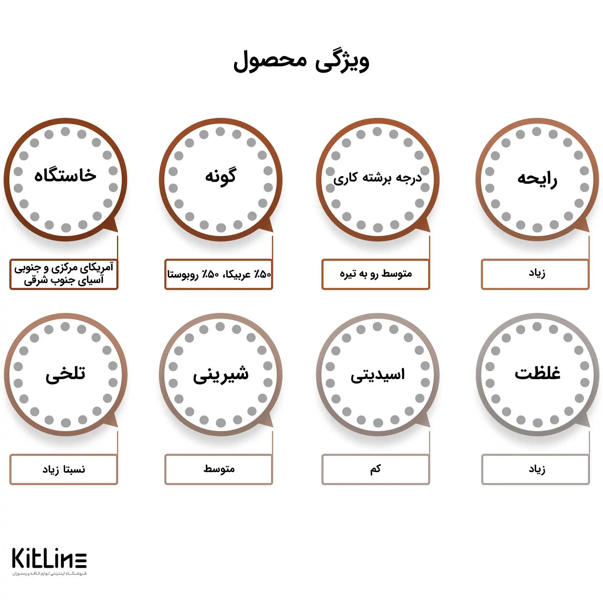 - درجه برشتکاری: متوسط روبه تیره