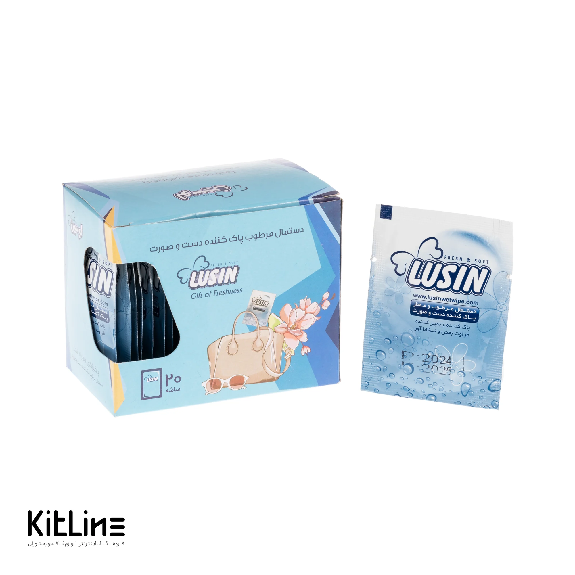 دستمال مرطوب دست و صورت ساشه ای لوسین (بسته ۲۰ عددی)