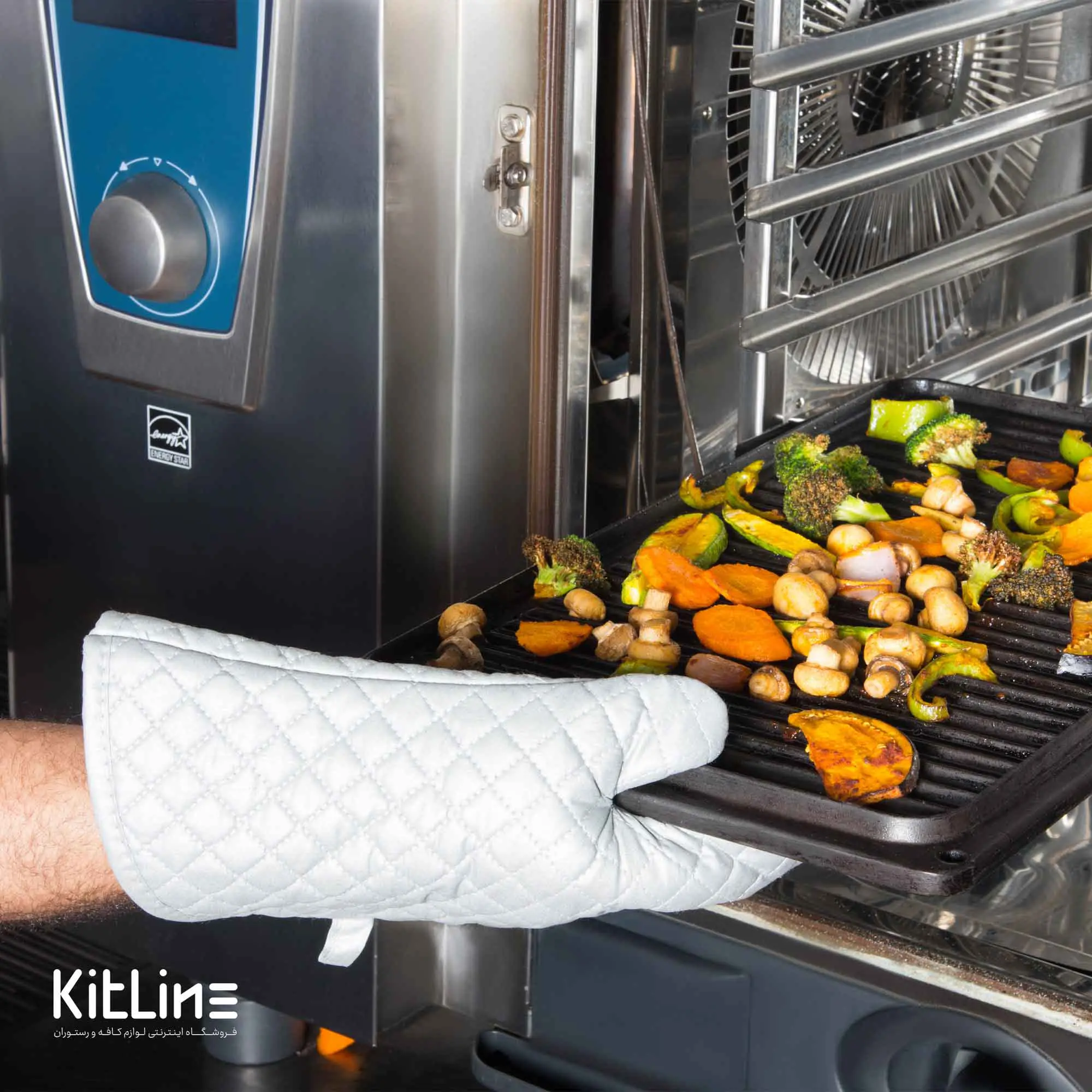 • خارج کردن ظروف داغ از فر: دستکش نسوز برای خارج کردن ظروف داغ مانند قابلمه، تابه و سینی از فر بسیار مناسب است.