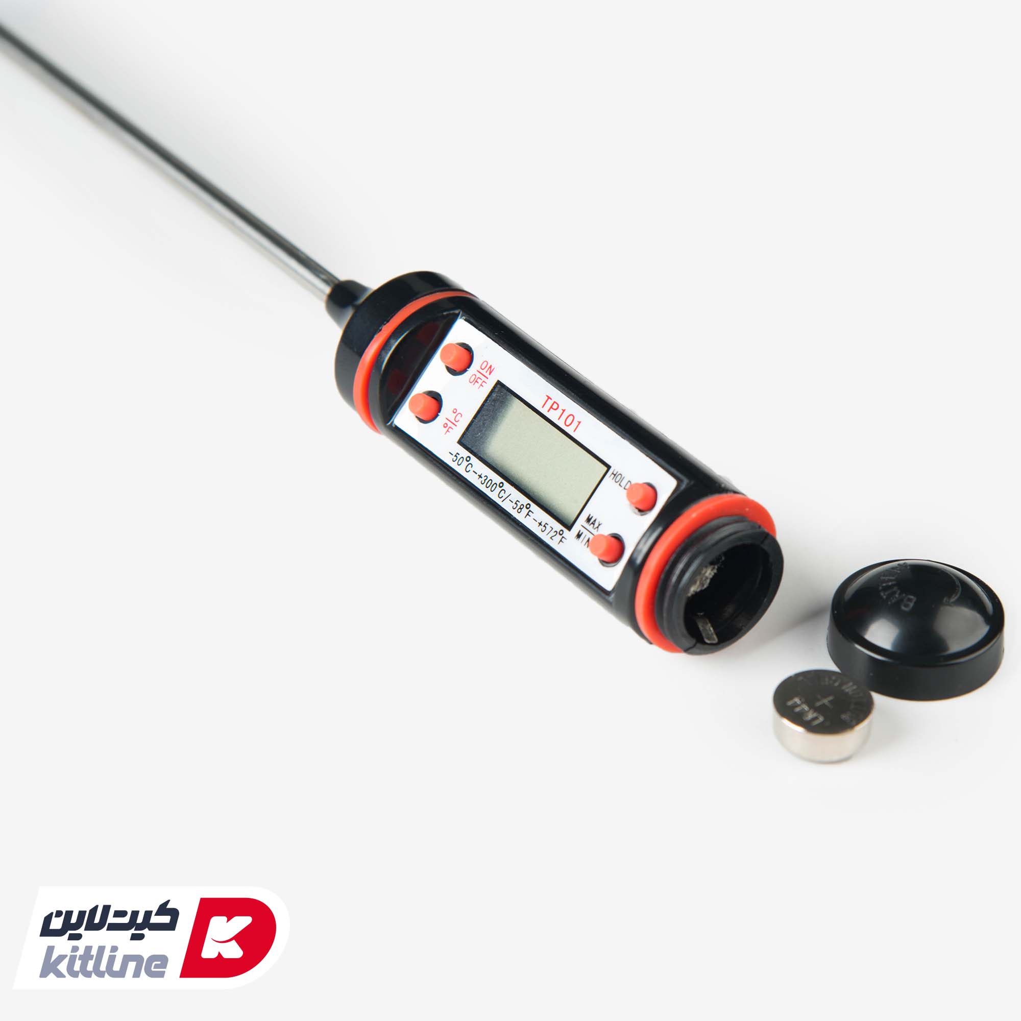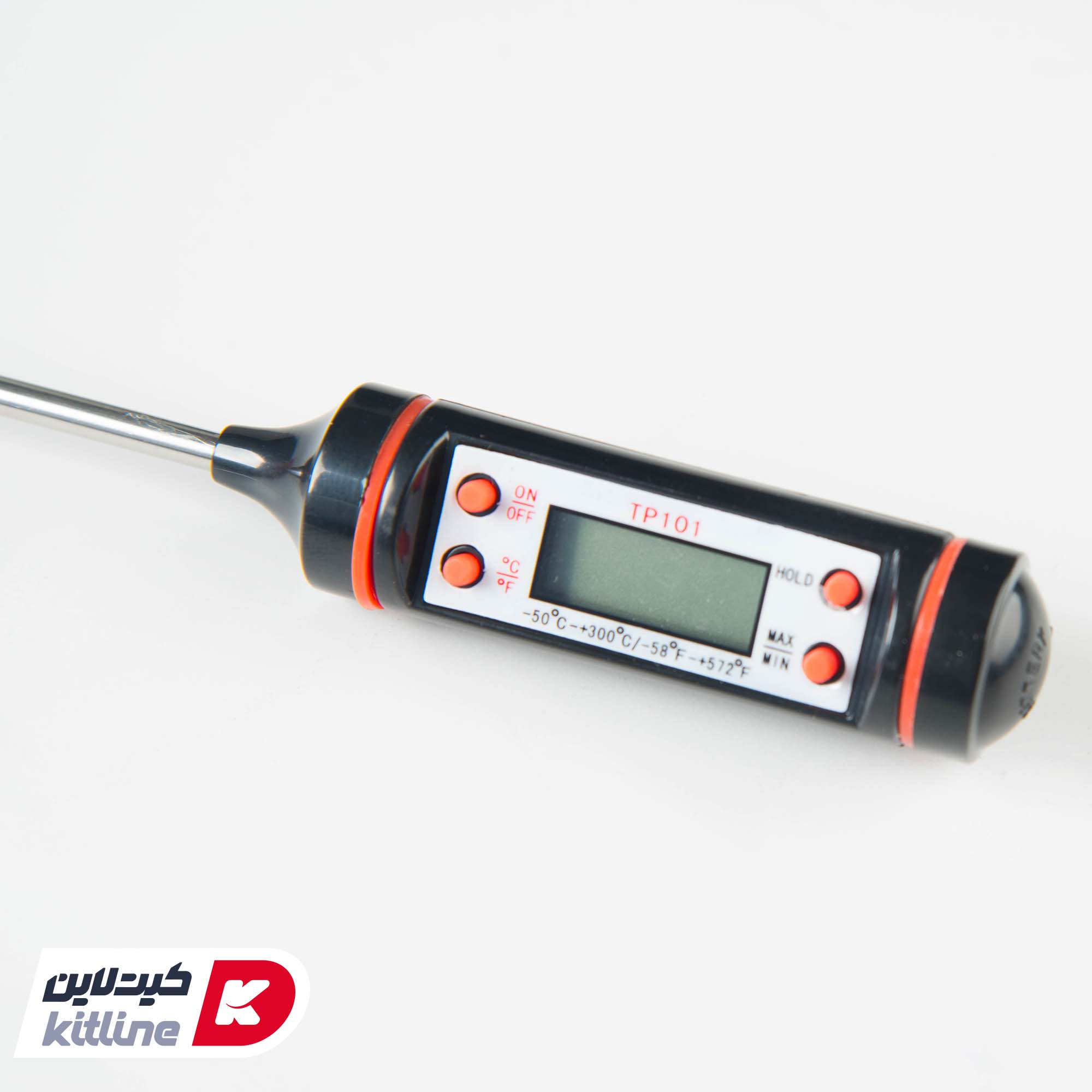برای اندازه گیری دمای انواع غذا و مایعات در آشپزخانه می توان از این ترمومتر استفاده کرد. این ترمومتر دارای میله باریک و بلند به طول ۱۴ سانتیمتر می باشد که با قرار دادن انتهای میله داخل مواد دمای آن را به سانتی گراد و فارنهایت روی صفحه نمایش نشان می دهد. همچنین این ترمومتر یا دماسنج غذا دارای دکمه نگهدارنده Hold و قابلیت خاموش شدن خودکارمی باشد.