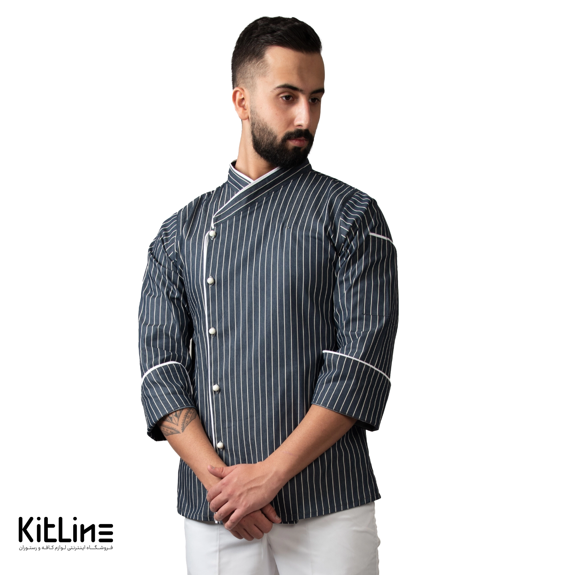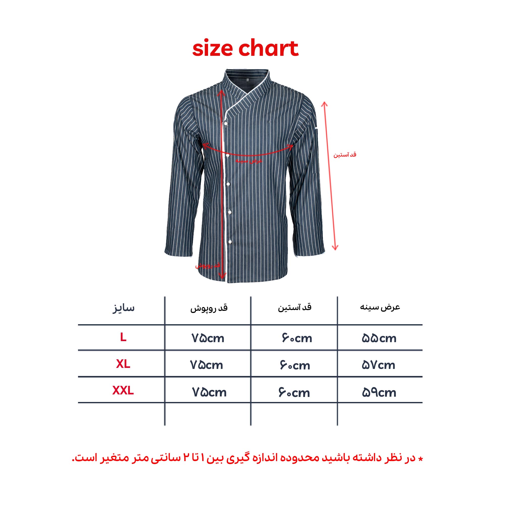 روپوش سرآشپز آستین بلند دکمه جداشو راه راه سرمه ای پوشاکو