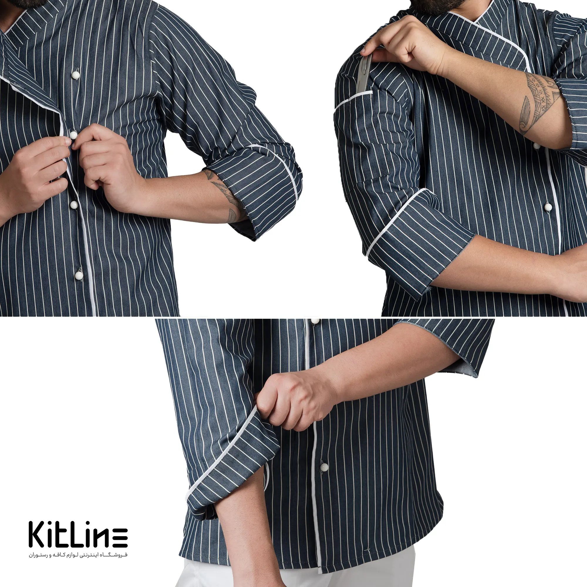 ویژگی‌های روپوش سرآشپز راه راه سرمه ای: