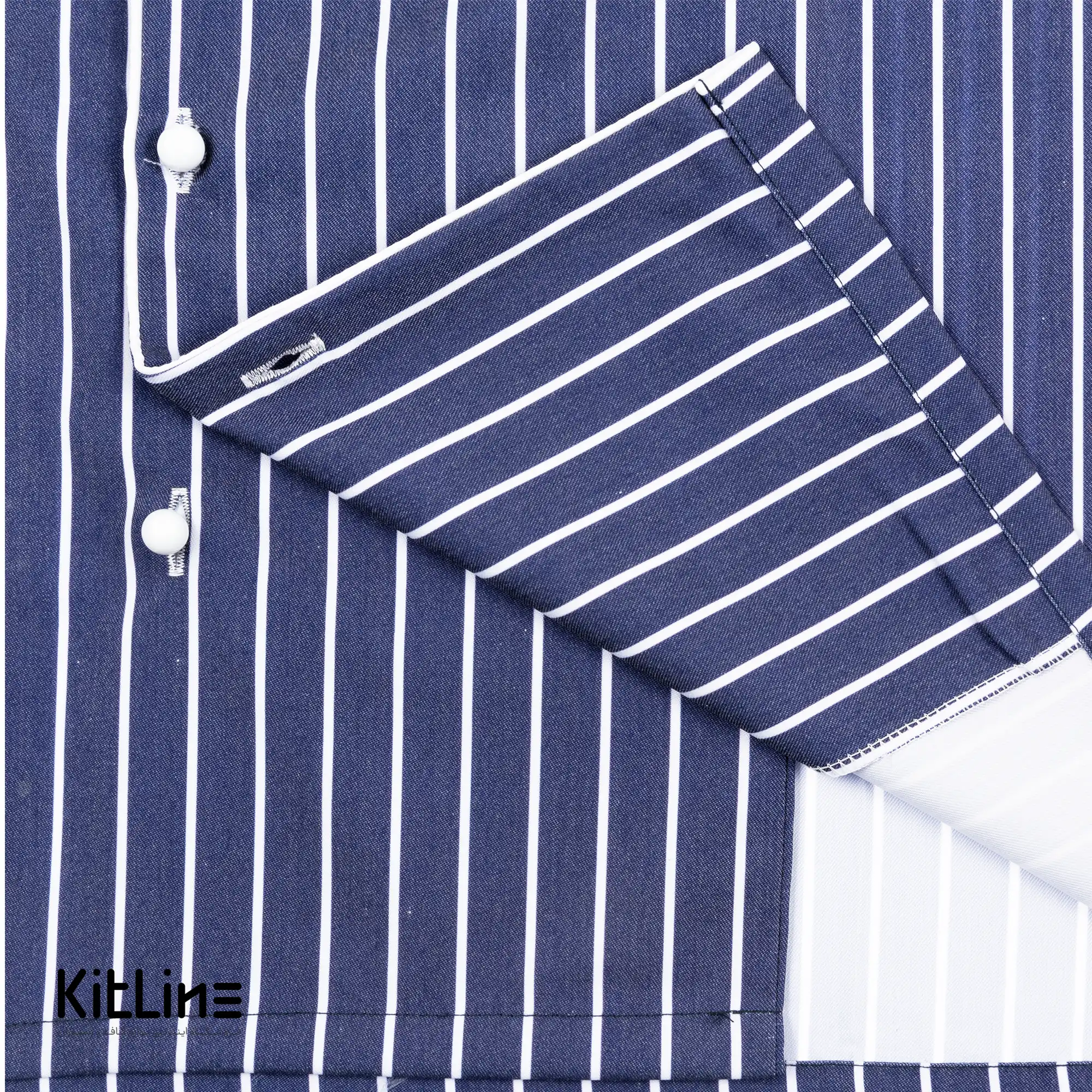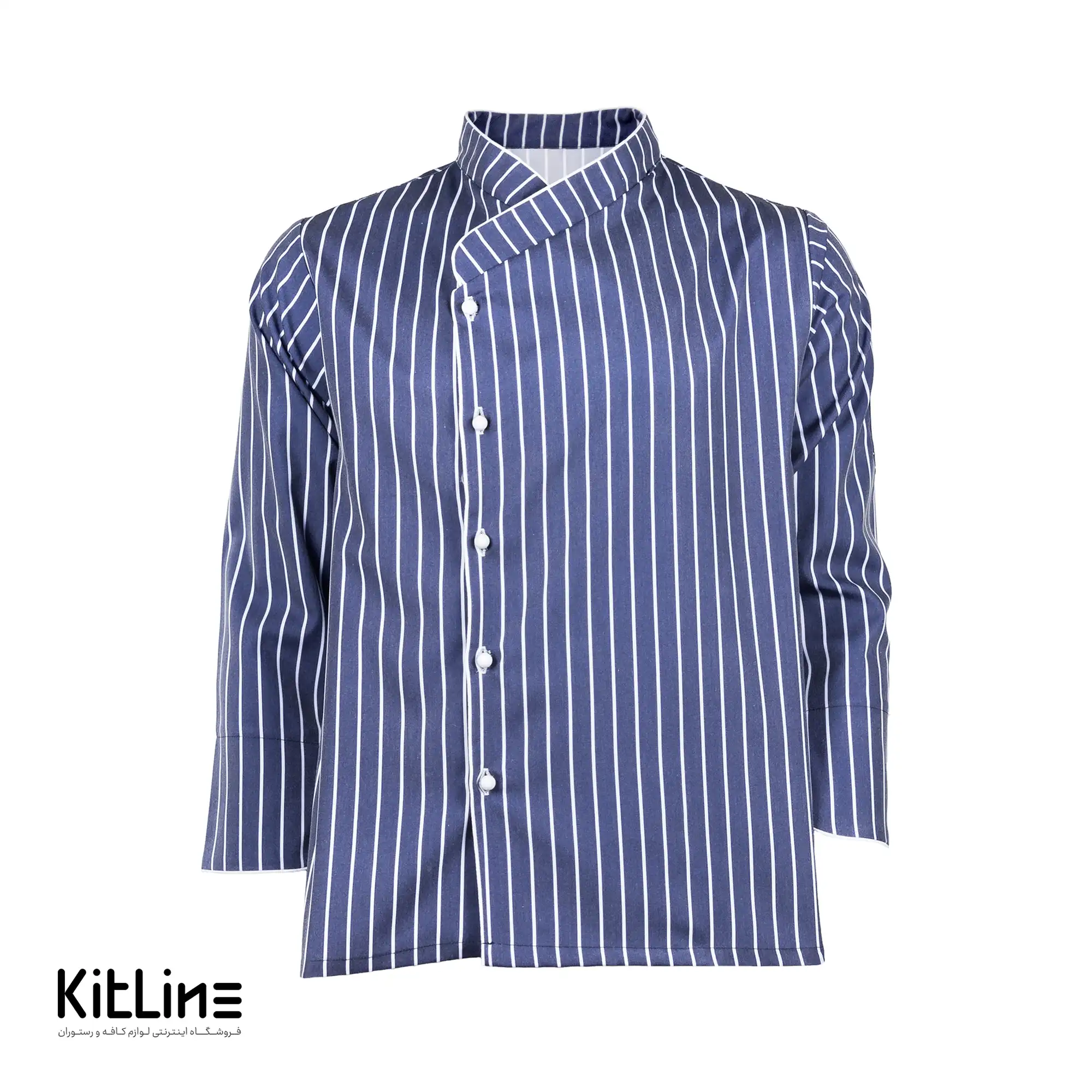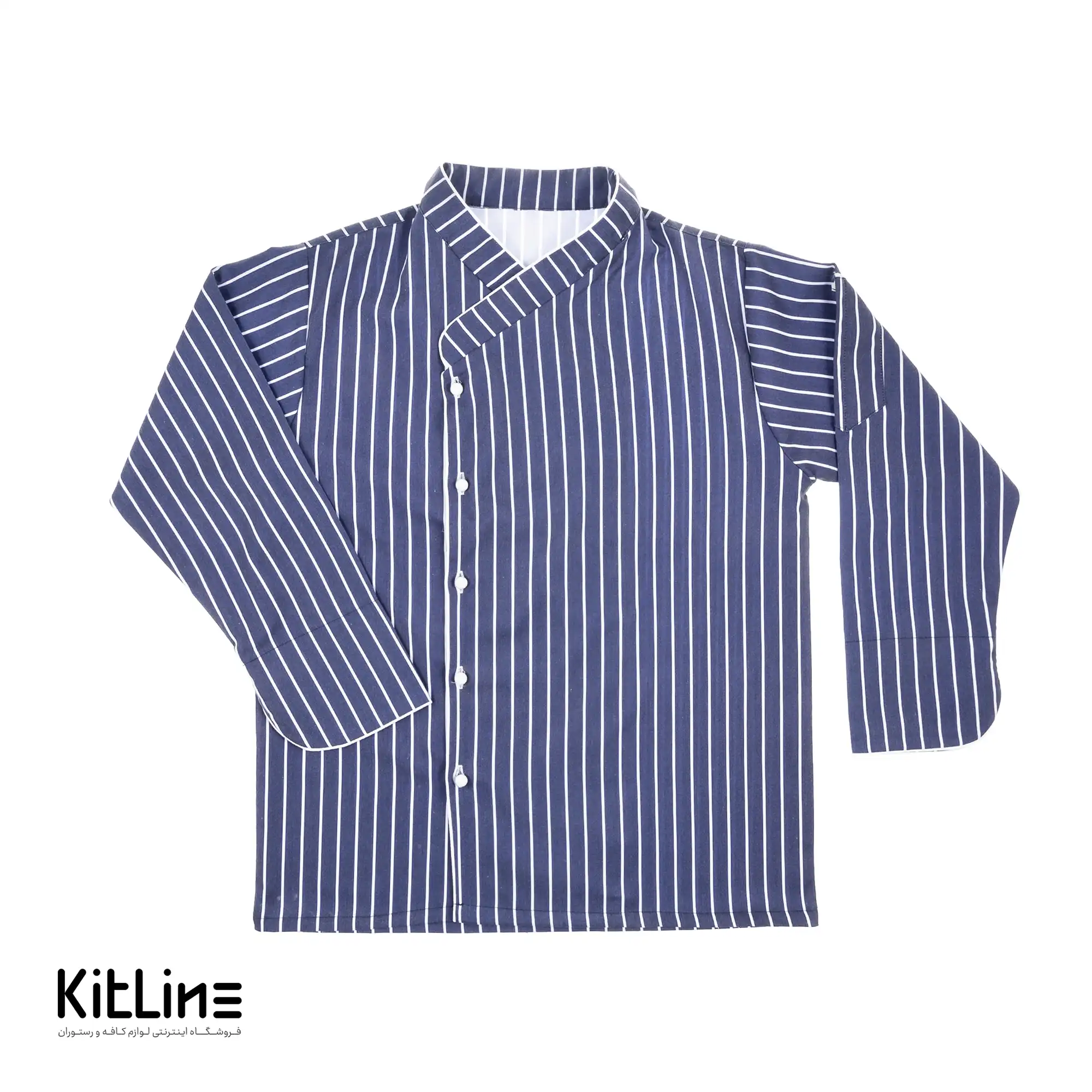 روپوش سرآشپز آستین بلند دکمه جداشو راه راه سرمه ای پوشاکو
