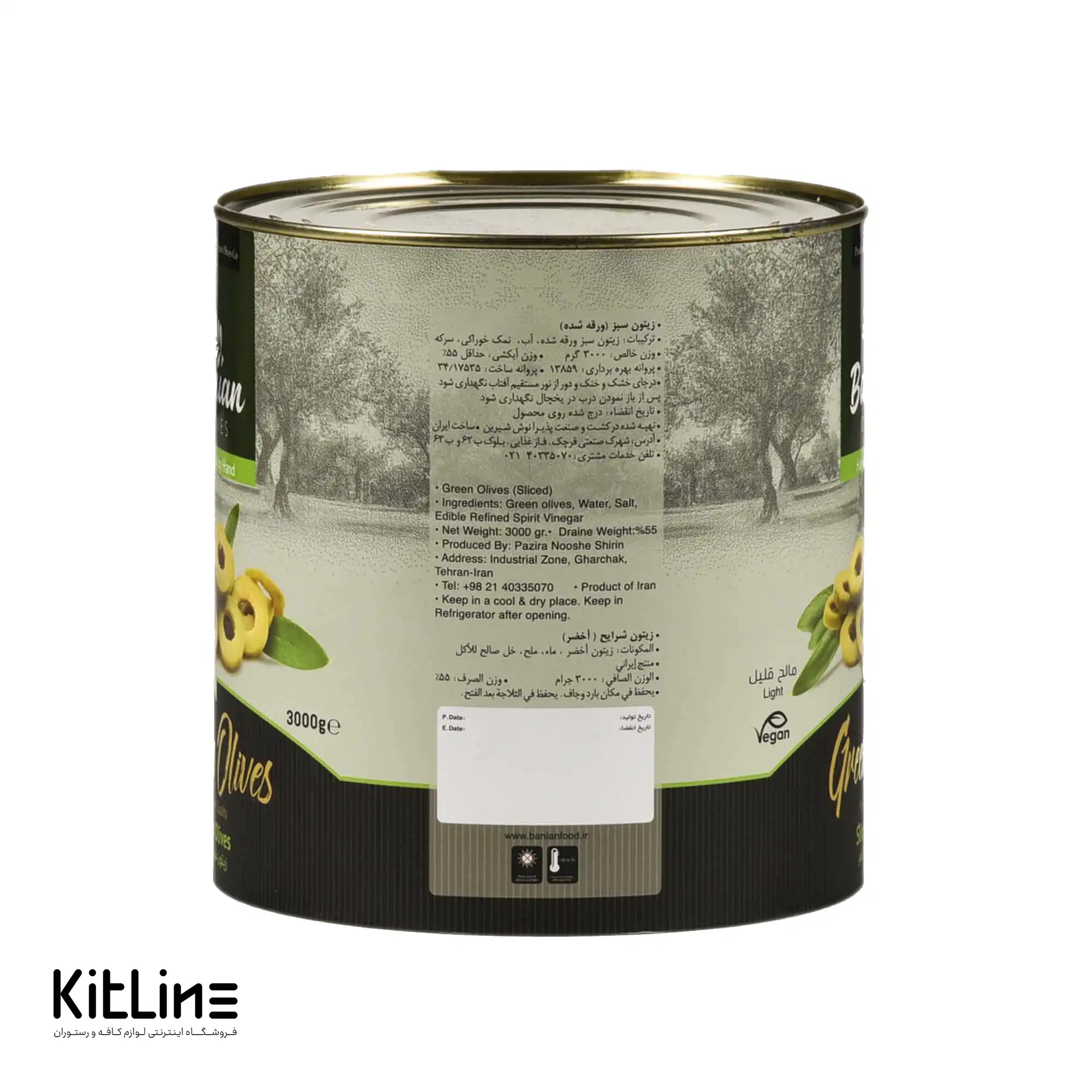 - بستهبندی مناسب: زیتون سبز اسلایس بانیان در قوطیهای ۳ کیلوگرمی ارائه میشود که برای استفاده در رستورانها، کیترینگها و هتلها ایدهآل است.
