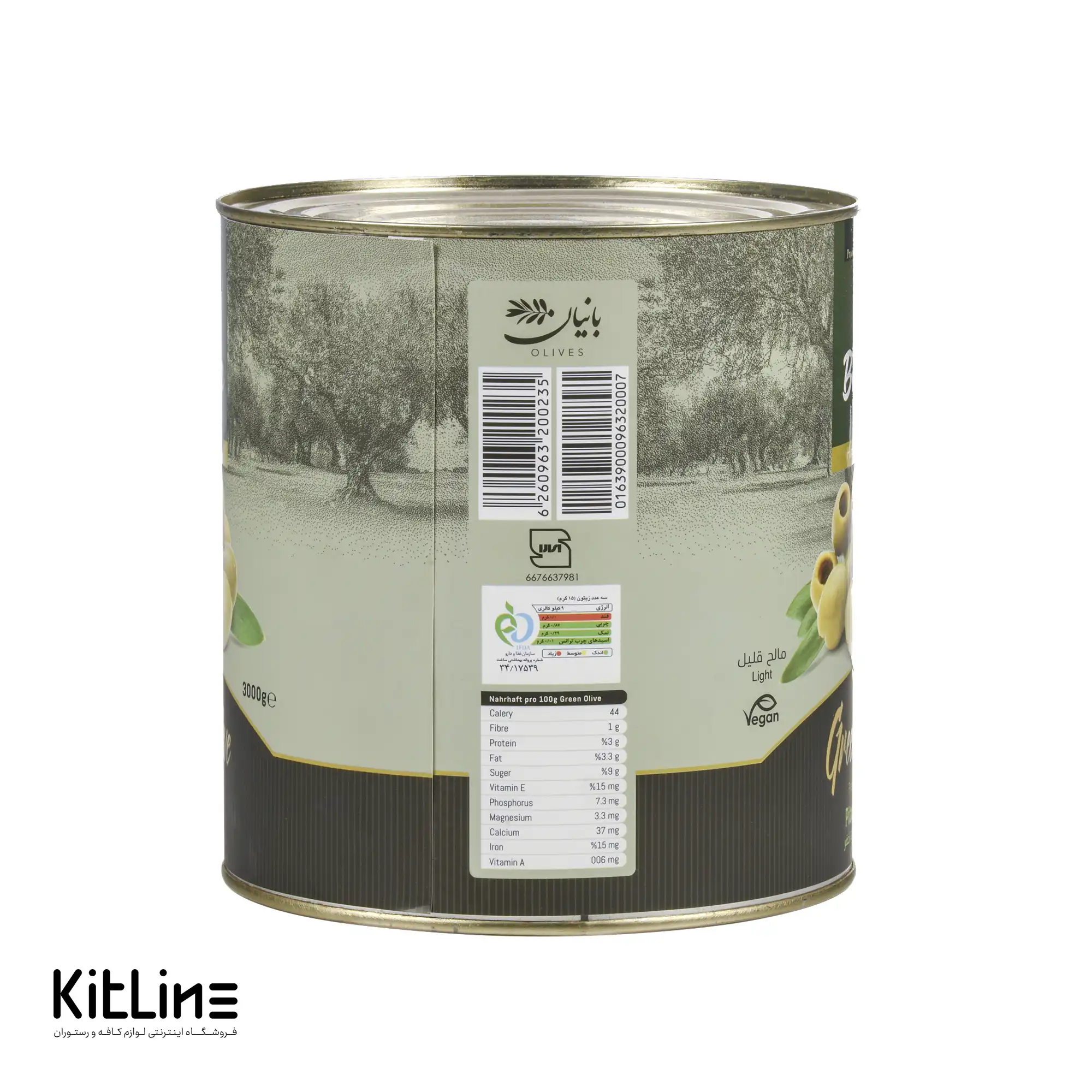 زیتون سبز بی هسته کنسروی سوپر بانیان ۳ کیلوگرمی
