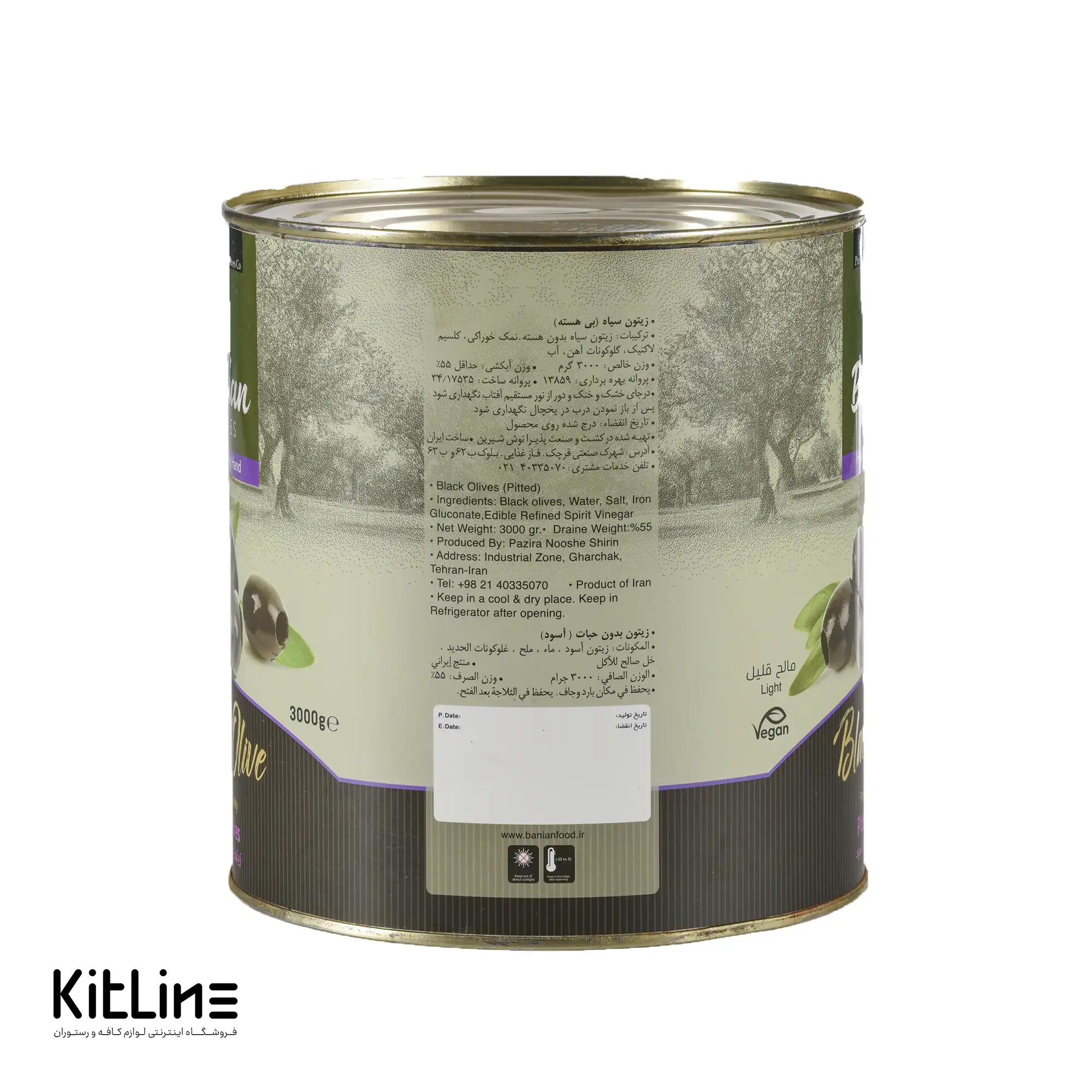 زیتون سیاه بی هسته کنسروی سوپر بانیان ۳ کیلوگرمی