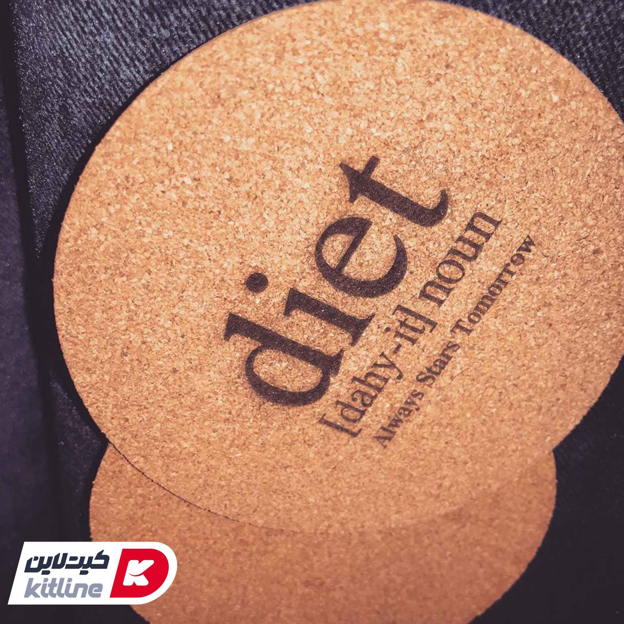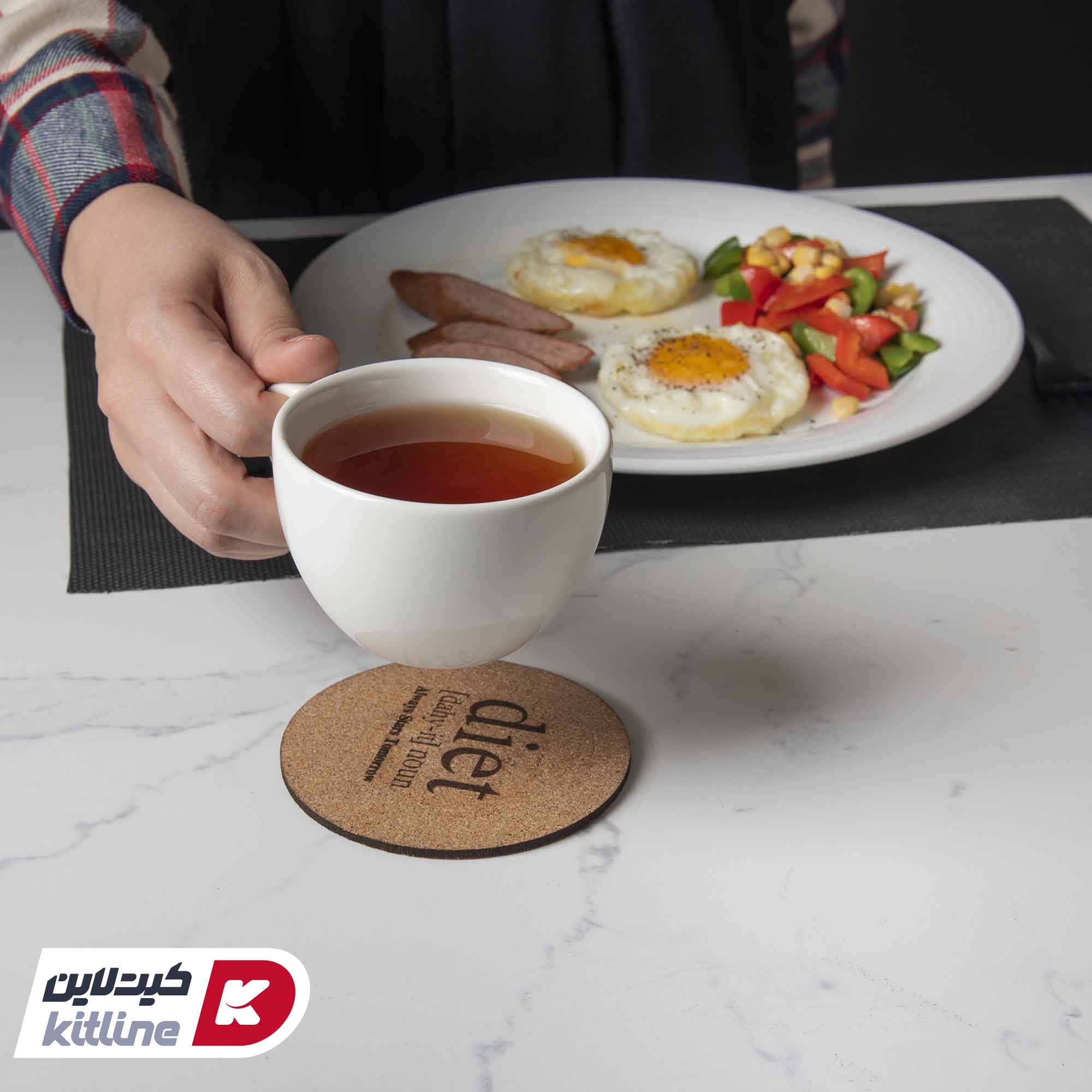 زیر لیوانی چوب پنبه ای ۱۰ سانتیمتری گرد طرح diet (ست ۵ عددی)