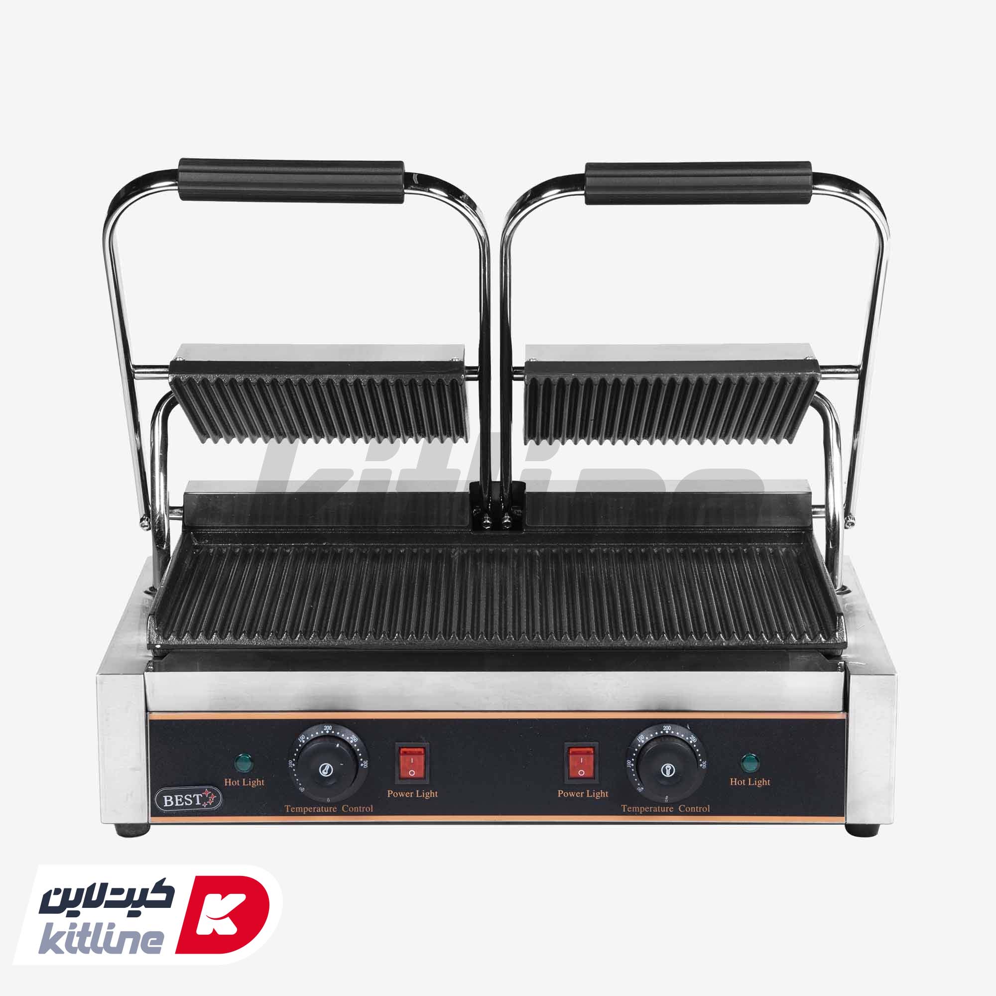 دستگاه ساندویچ میکر ۲ خانه BEST دارای دوترموستات جداگانه برای کنترل دمای هرصفحه پخت می باشد. دمای قابل تنظیم برای هر قسمت تا ۳۰۰ درجه سانتی گراد است.