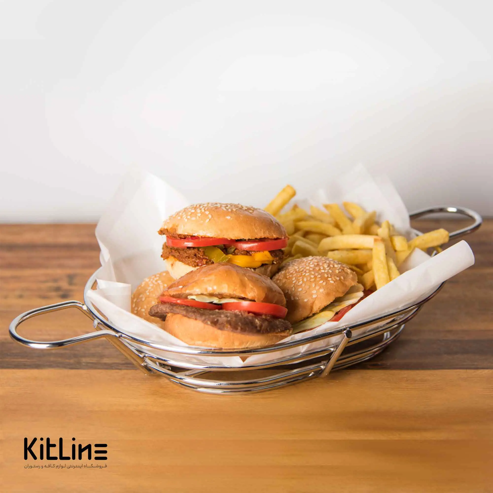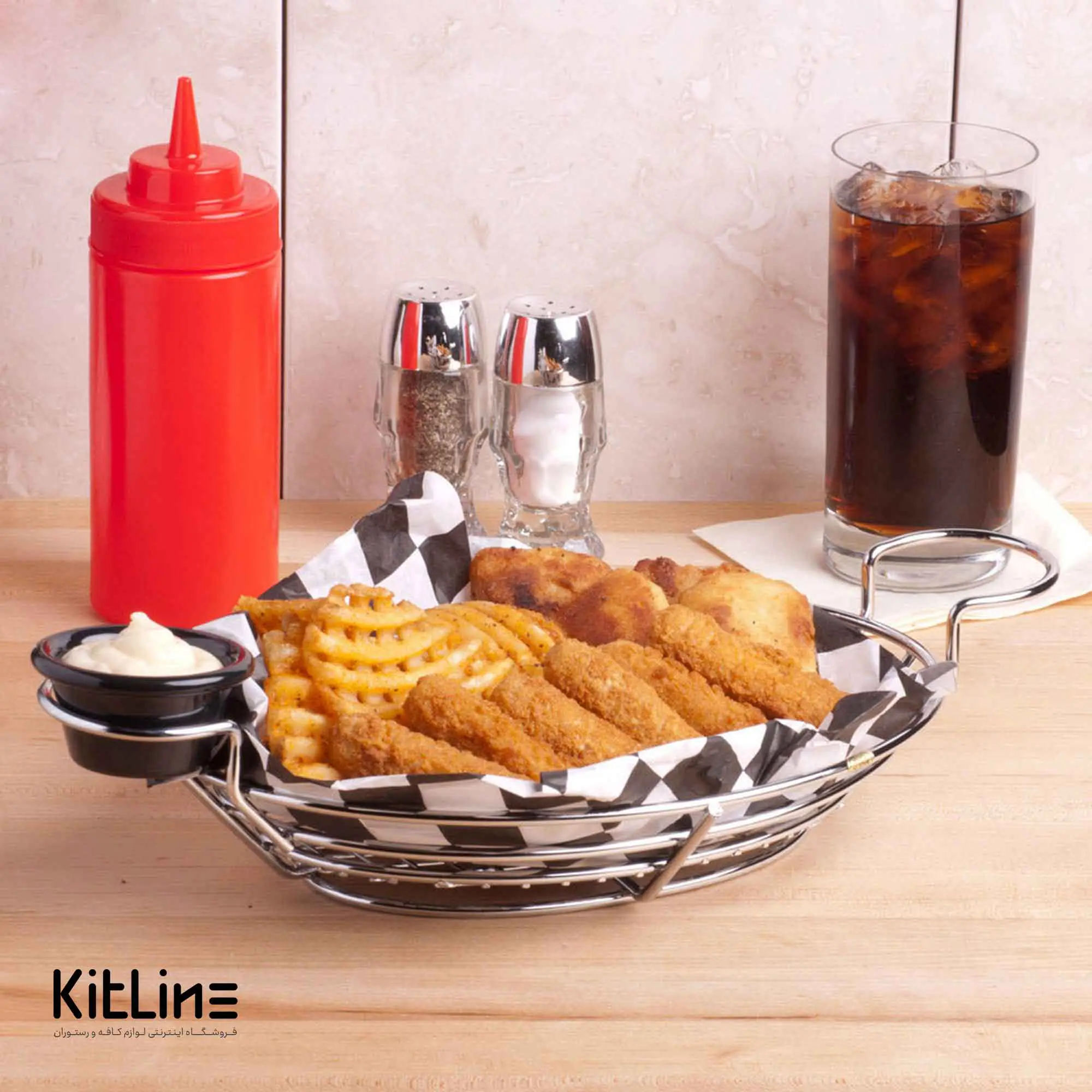 سبد سرو بیضی ۸×۲۰×۴۰ سانتیمتری فلزی با جای سس کاپ برند کیچن تک معمولا برای سرو غذاهای سرخ کردنی در حجمی مشخص استفاده می شود.