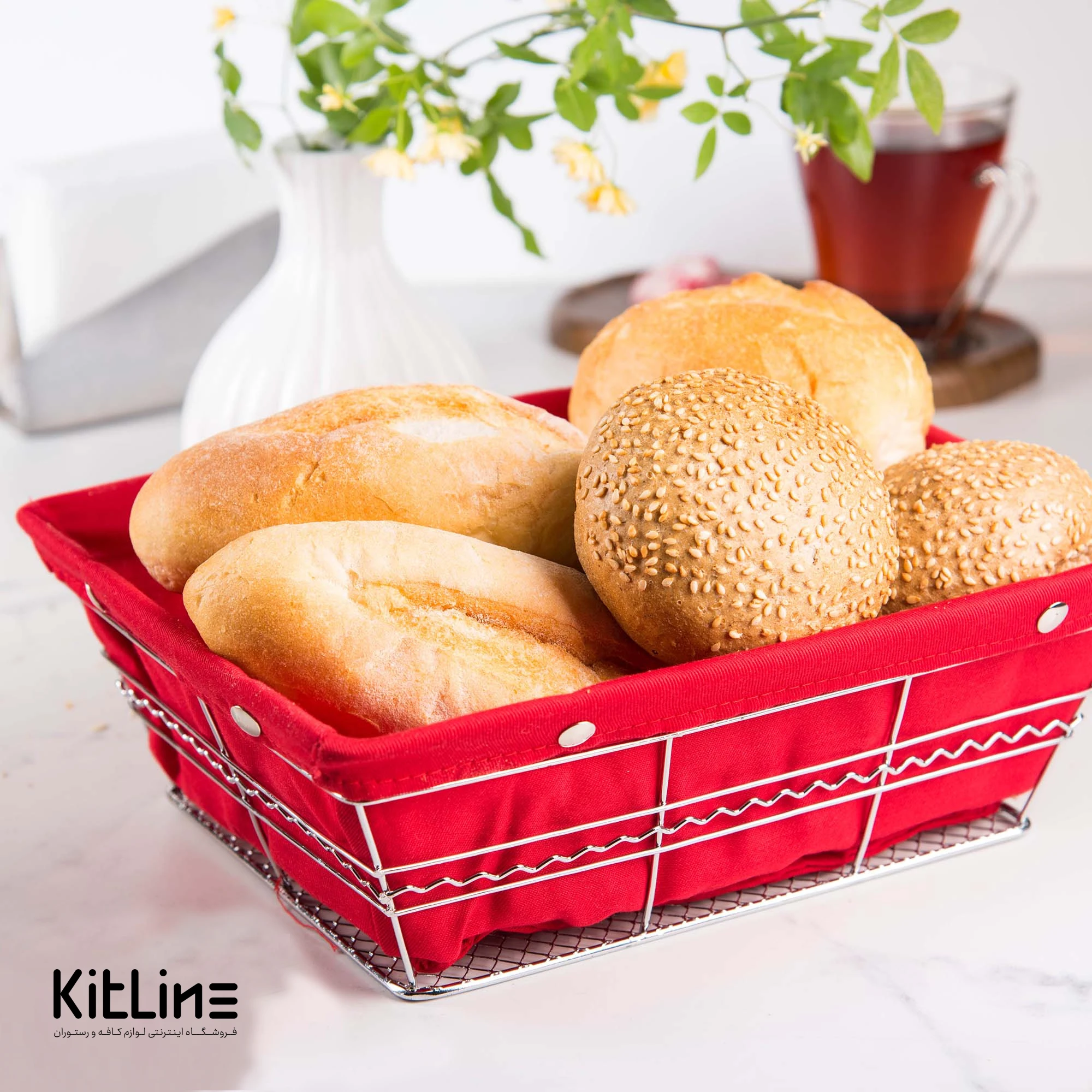• پارچه قرمز: پارچه قرمز این سبد علاوه بر زیبایی، از نان و سبزیجات در برابر گرد و غبار محافظت می‌کند.