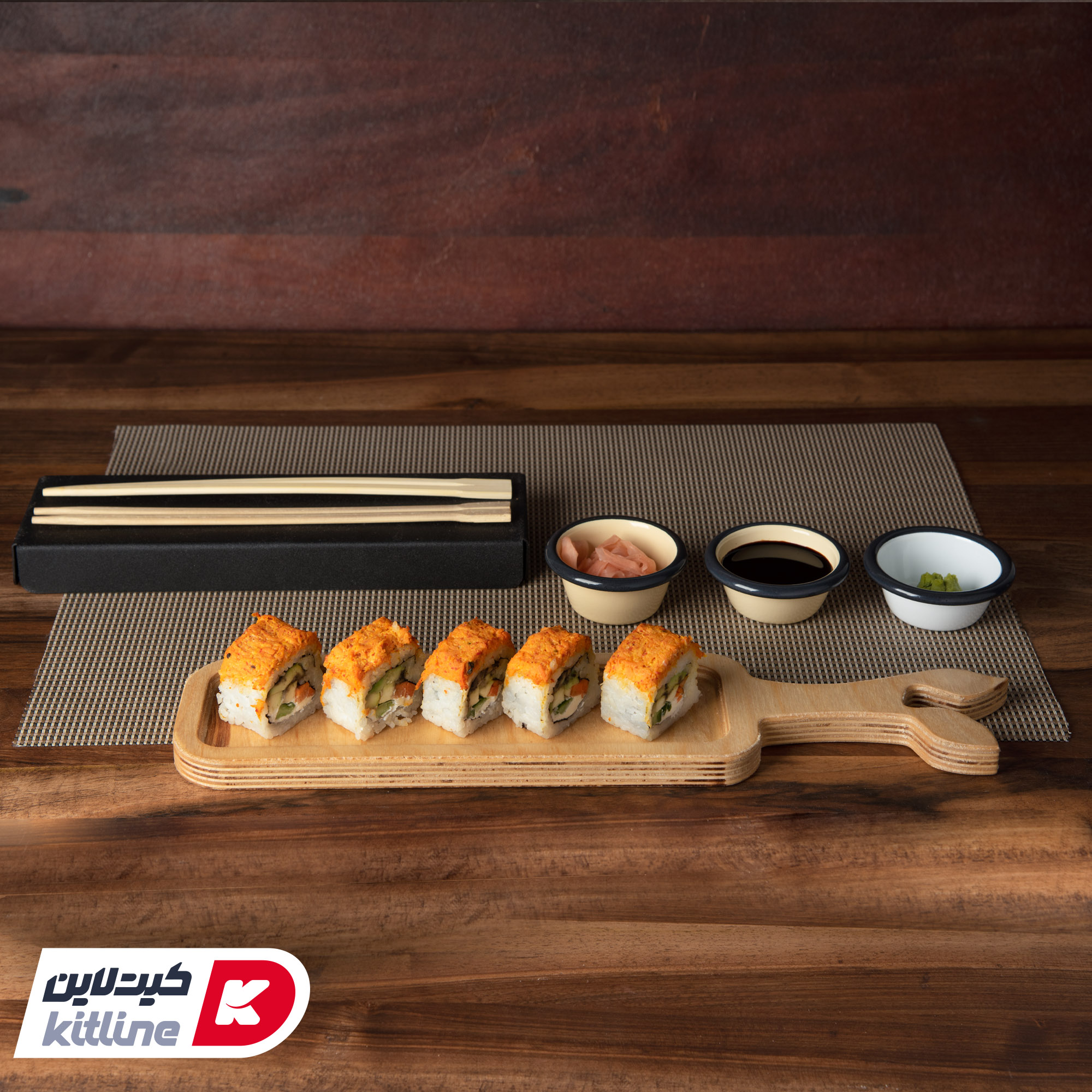 سینی چوبی جهت سرو سوشی و مزه هایی مانند زیتون، پنیر و … در کافه، رستوران یا در محیط های خانگی مناسب میباشد.
