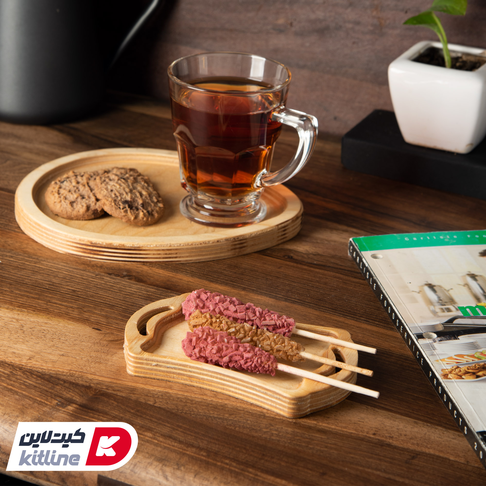 سینی چوبی کوچک جهت سرو شیرینی جات مانند کوکی، باقلوا، خرما، نبات و … در کنار چای، دمنوش و انواع قهوه در کافه، رستوران یا در محیط های خانگی مناسب میباشد.