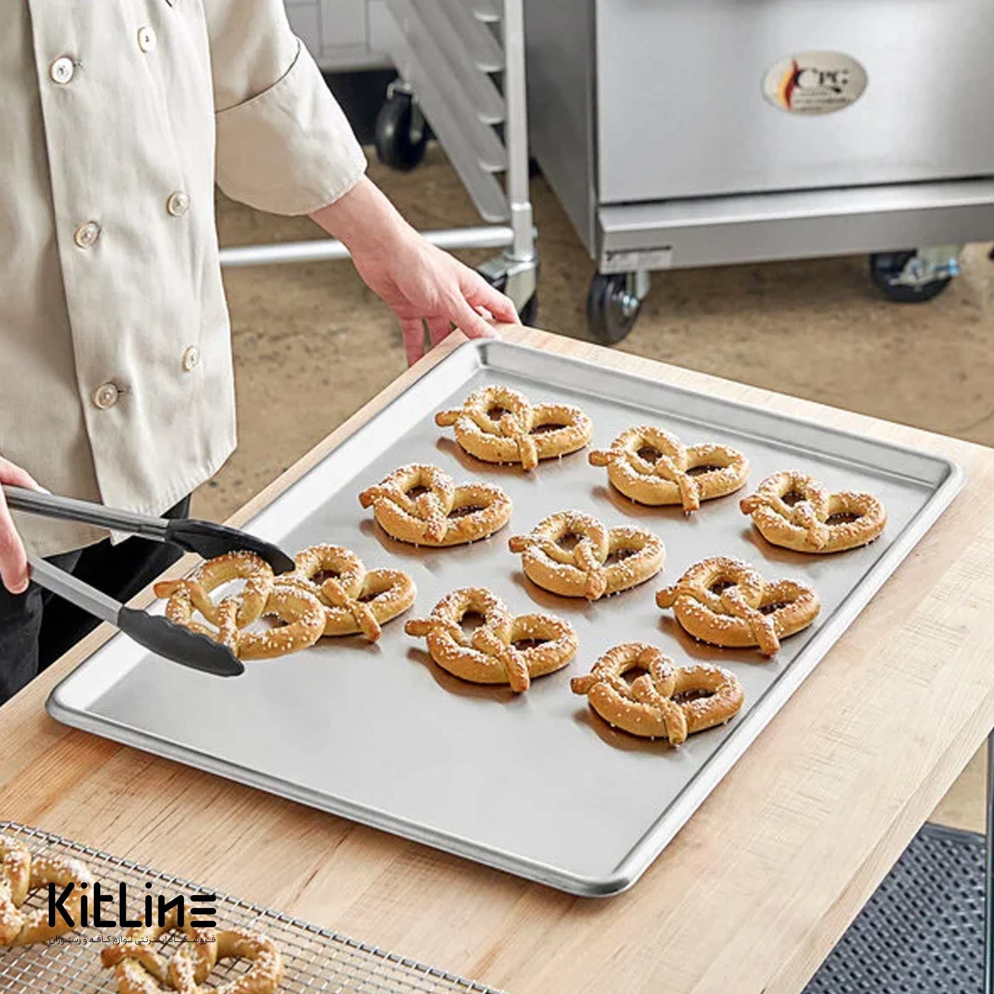 • پخت ثابت و یکنواخت: ساختار مسطح این سینی قهوه‌ای شدن (براونینگ) و پخت یکنواخت را تضمین می‌کند تا بتوانید کوکی‌ها، رول‌ها و موارد دیگر را کارامدتر بپزید. سینی آلومینیومی برای جابه جایی محصولات پخته شده از ایستگاهی به ایستگاه دیگر و همچنین برای استفاده در ایستگاه آماده‌سازی در آشپزخانه شما عالی است.