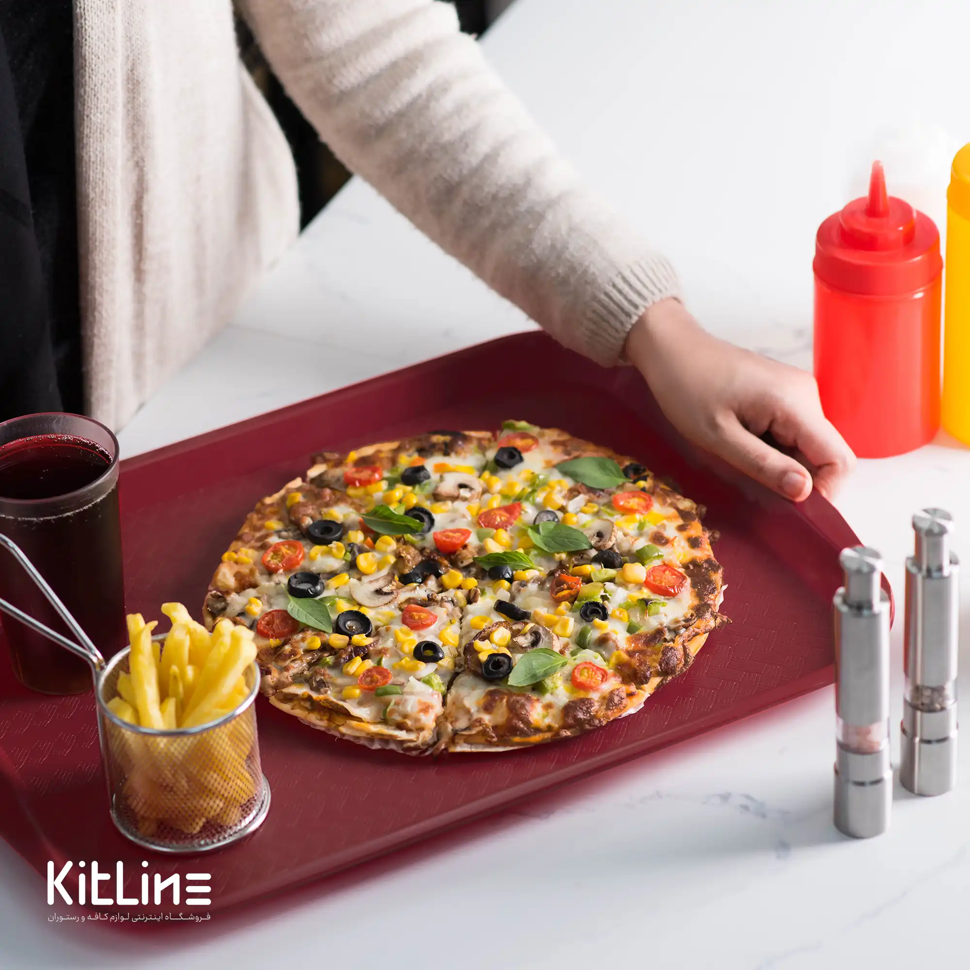 سینی پلی پروپیلن ۴۵x۳۵ سانتیمتری زرشکی کیچن تک، انتخابی ایده‌آل برای سرو غذا و نوشیدنی در محیط‌های مختلف مانند فودکورت‌ها، فست فودها و سلف سرویس‌ها است. این سینی با طراحی مقاوم و ضد لغزش خود، به راحتی می‌تواند نیازهای سرویس‌دهی در شرایط مختلف را برآورده کند.