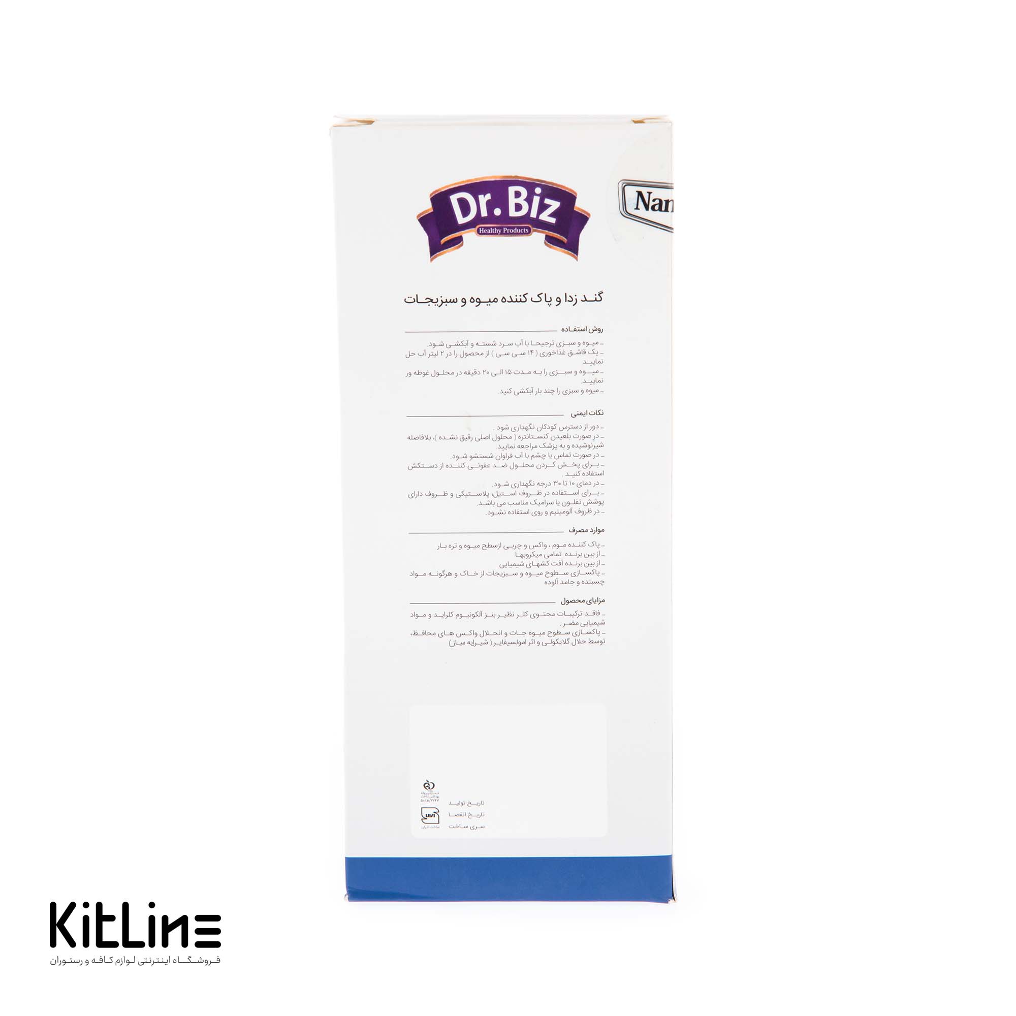 • یک قاشق غذا خوری (۱۴ سی سی) از محصول را در ۲ لیتر آب حل نمایید. سبزیجات را حداقل ۳۰ ثانیه خیس کنید.