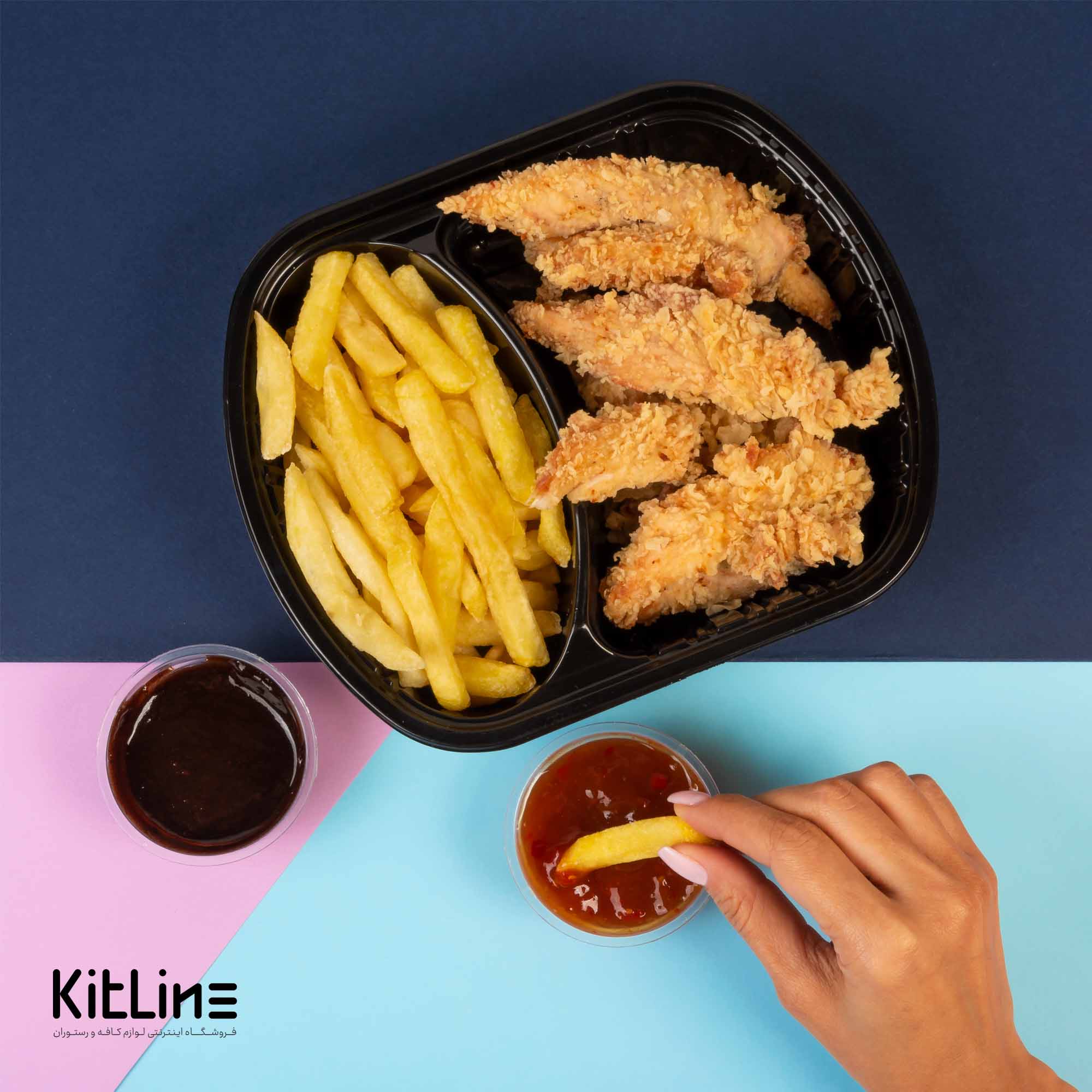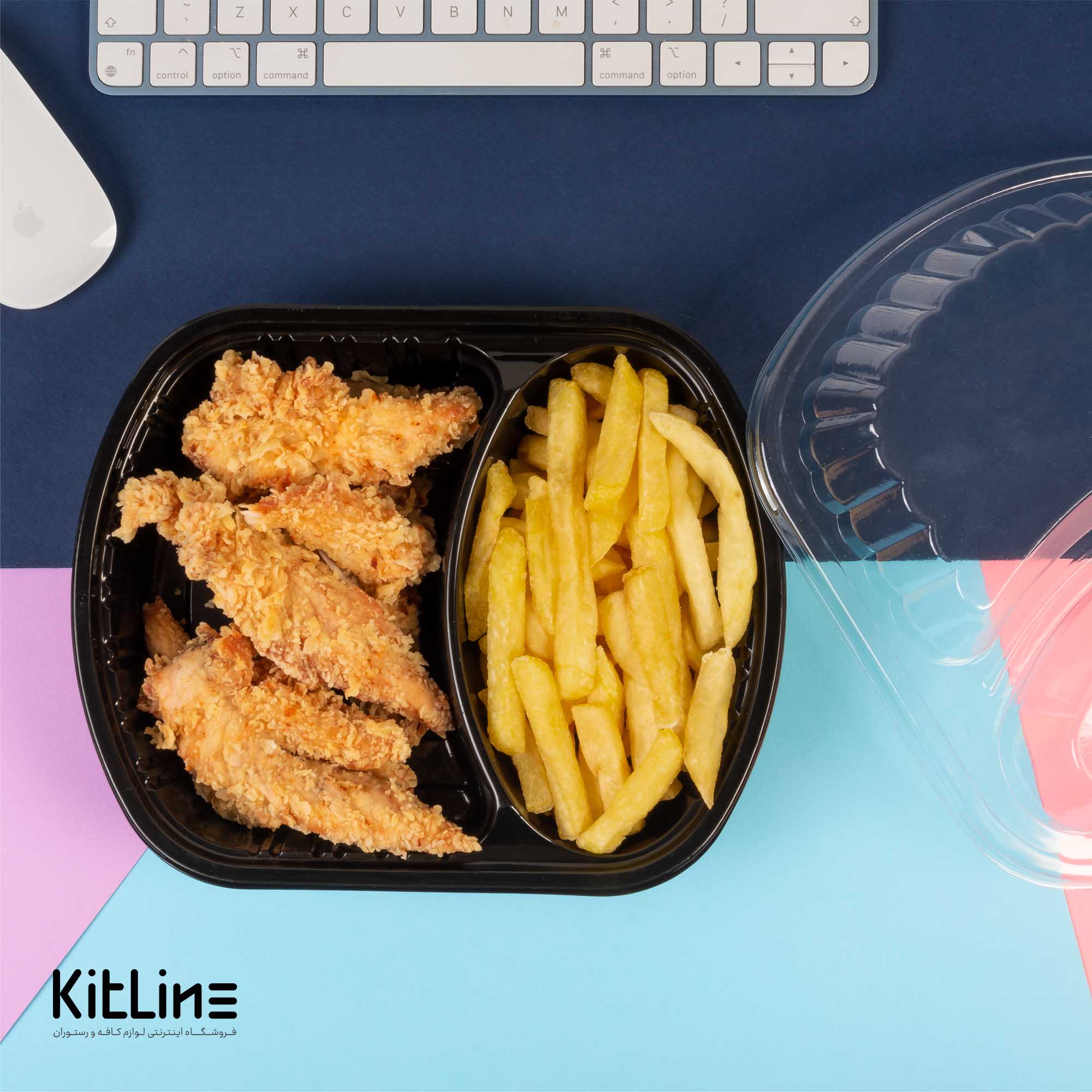 ظرف یکبار مصرف دو خانه همراه درب، با گرم و تازه نگه داشتن غذا برای مدت طولانی پس از خروج از آشپزخانه، گزینهای مناسب برای سفارشات دلیوری و بیرونبر رستوران و کافه میباشد.