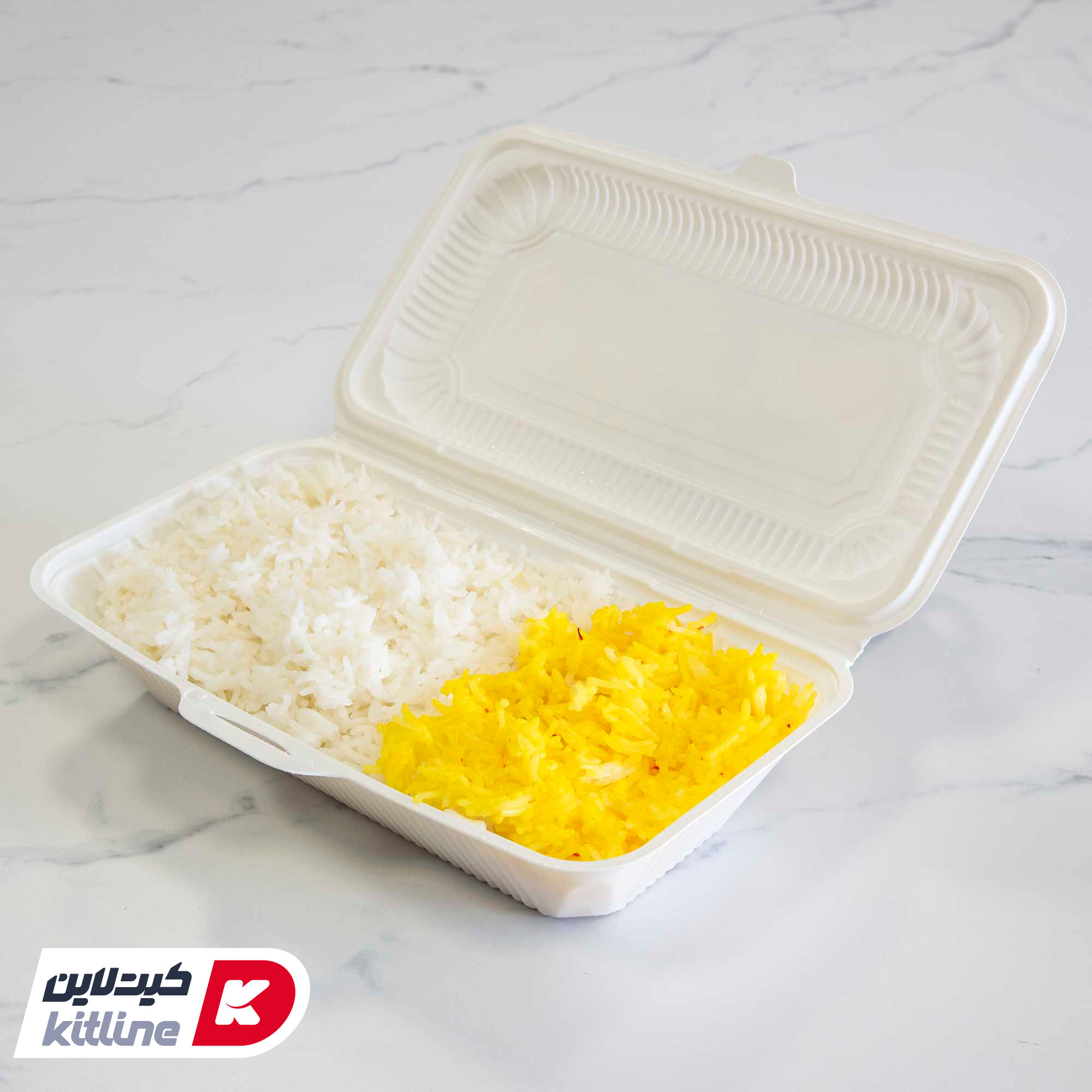 ظرف یکبار مصرف گیاهی درب دار آملون ۱۴×۲۶ سانتیمتری (کارتن ۱۰۰ عددی)