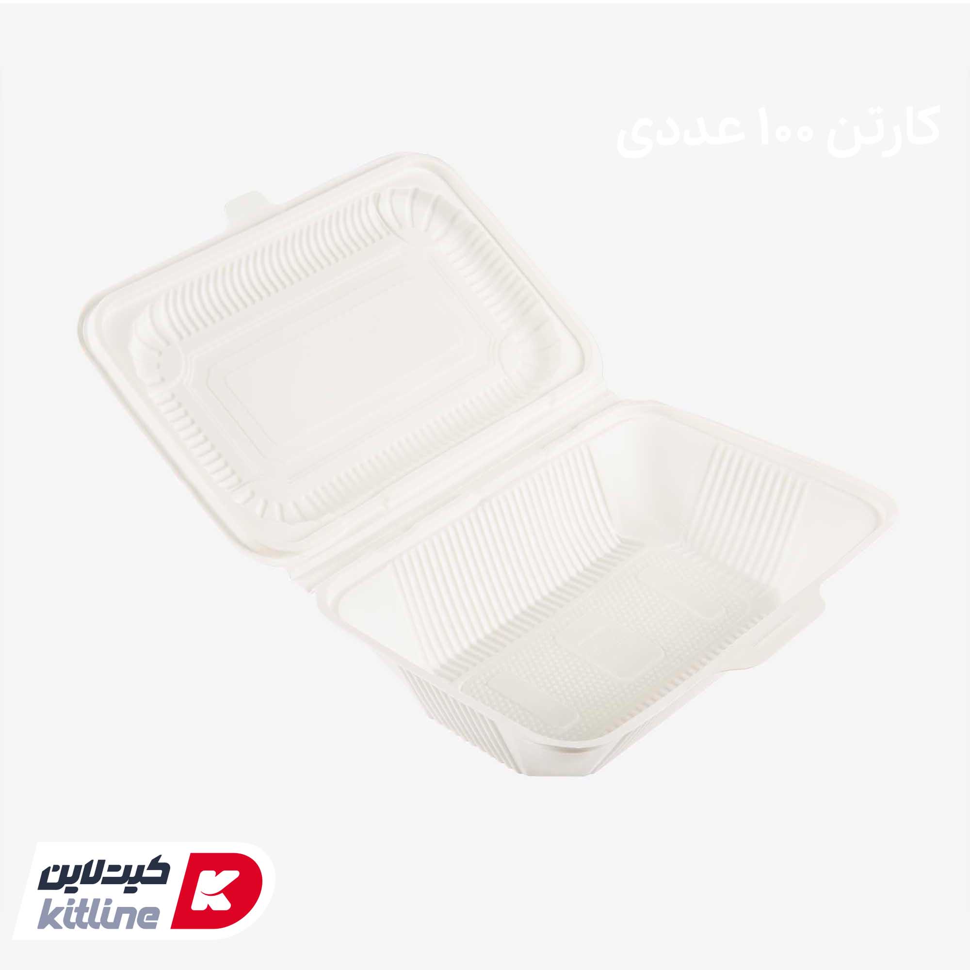 ظرف یکبار مصرف گیاهی درب دار آملون ۱۴×۲۲ سانتیمتری (کارتن ۱۰۰ عددی)
