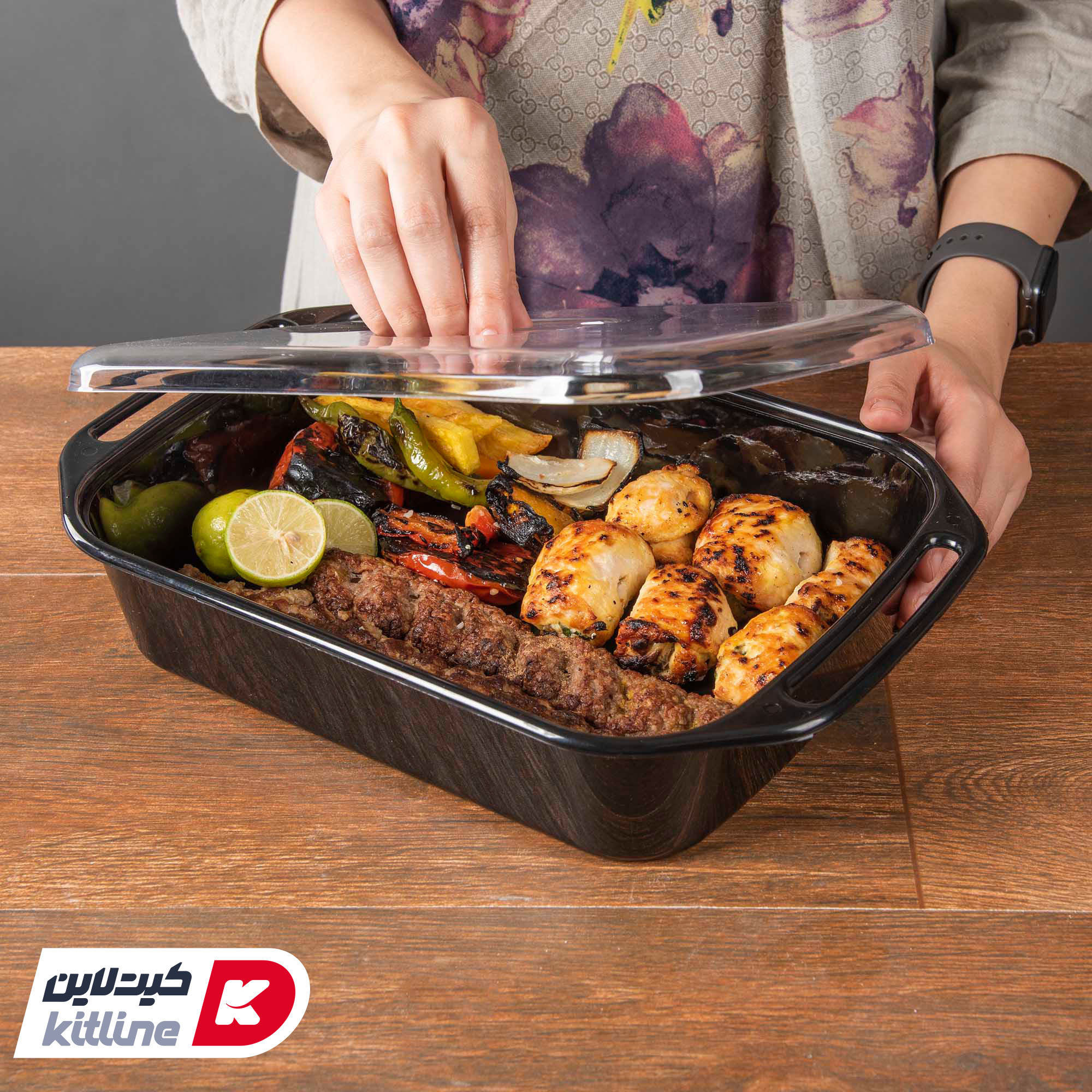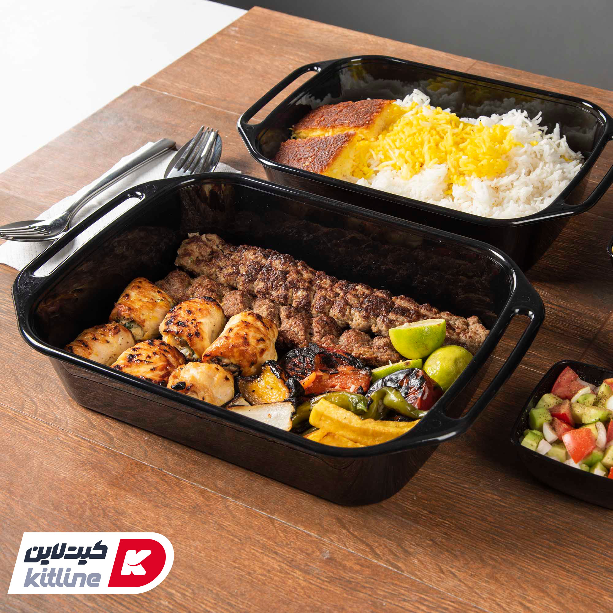 ظرف یکبارمصرف مشکی با درب شفاف، گزینه ای مناسب برای رستوران ها و کیترینگ ها جهت ارسال سفارش های بیرون بر و دلیوری میباشد.