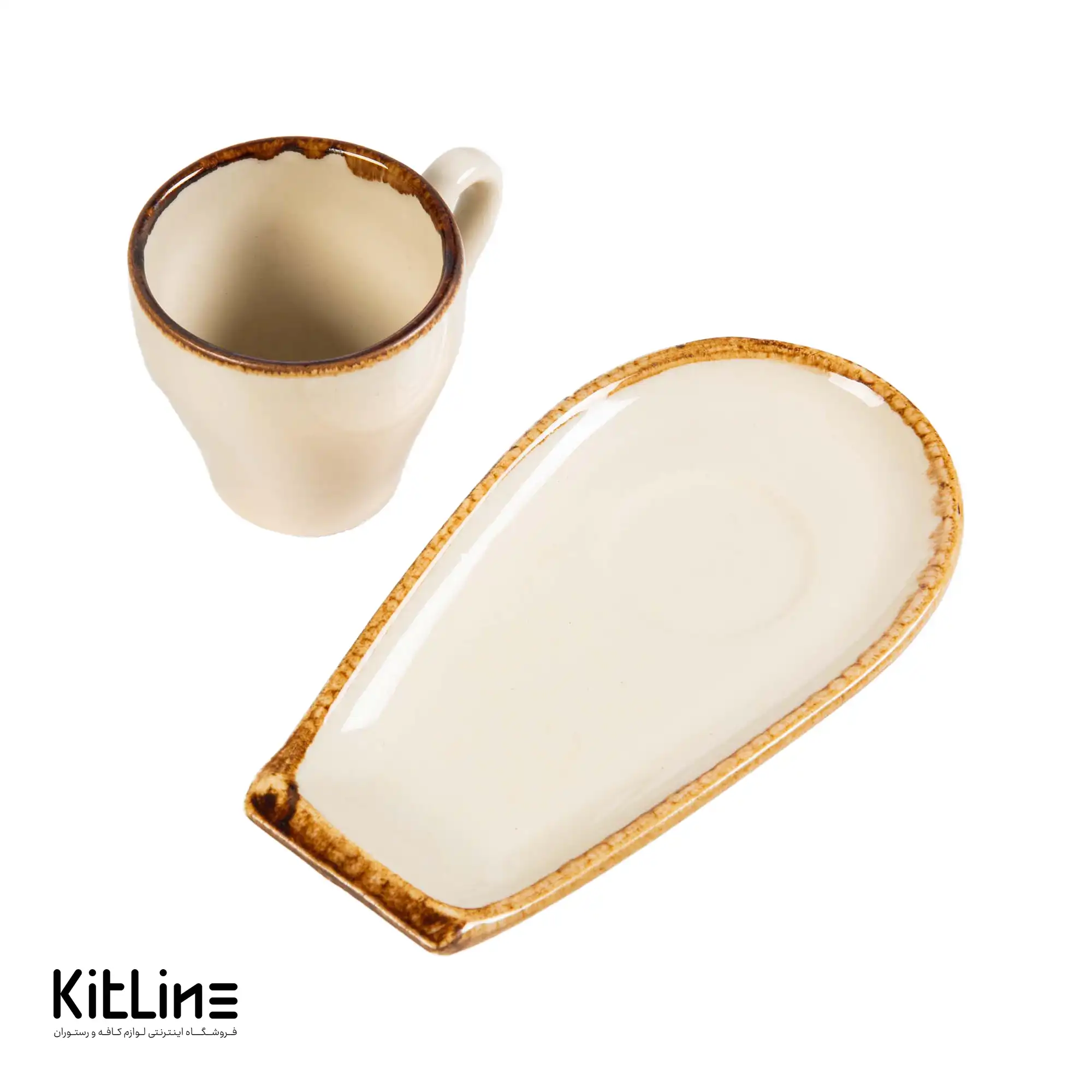 فنجان و نعلبکی سرامیکی ۹۰ میلی‌لیتری کرم باند دار کیچن تک