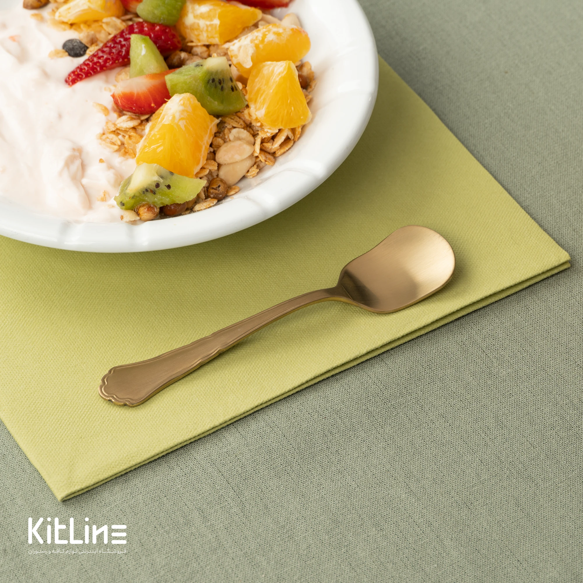 قاشق بستنی مدل تمام مات طلایی رویال صنایع استیل، از استیل ۱۸/۱۰ ساخته شده که در برابر خوردگی مقاوم است.