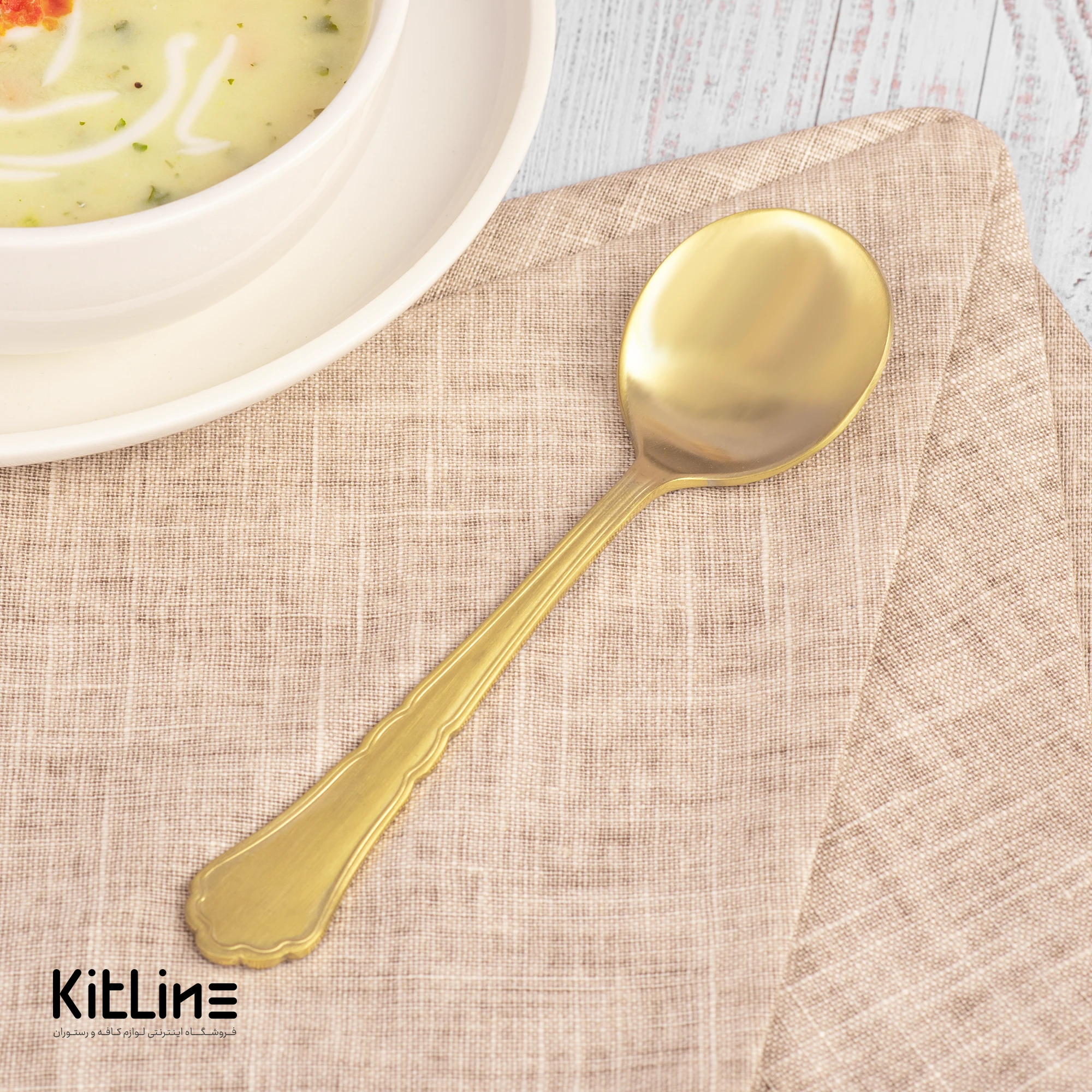 قاشق سوپ خوری صنایع استیل مدل رویال تمام مات طلایی