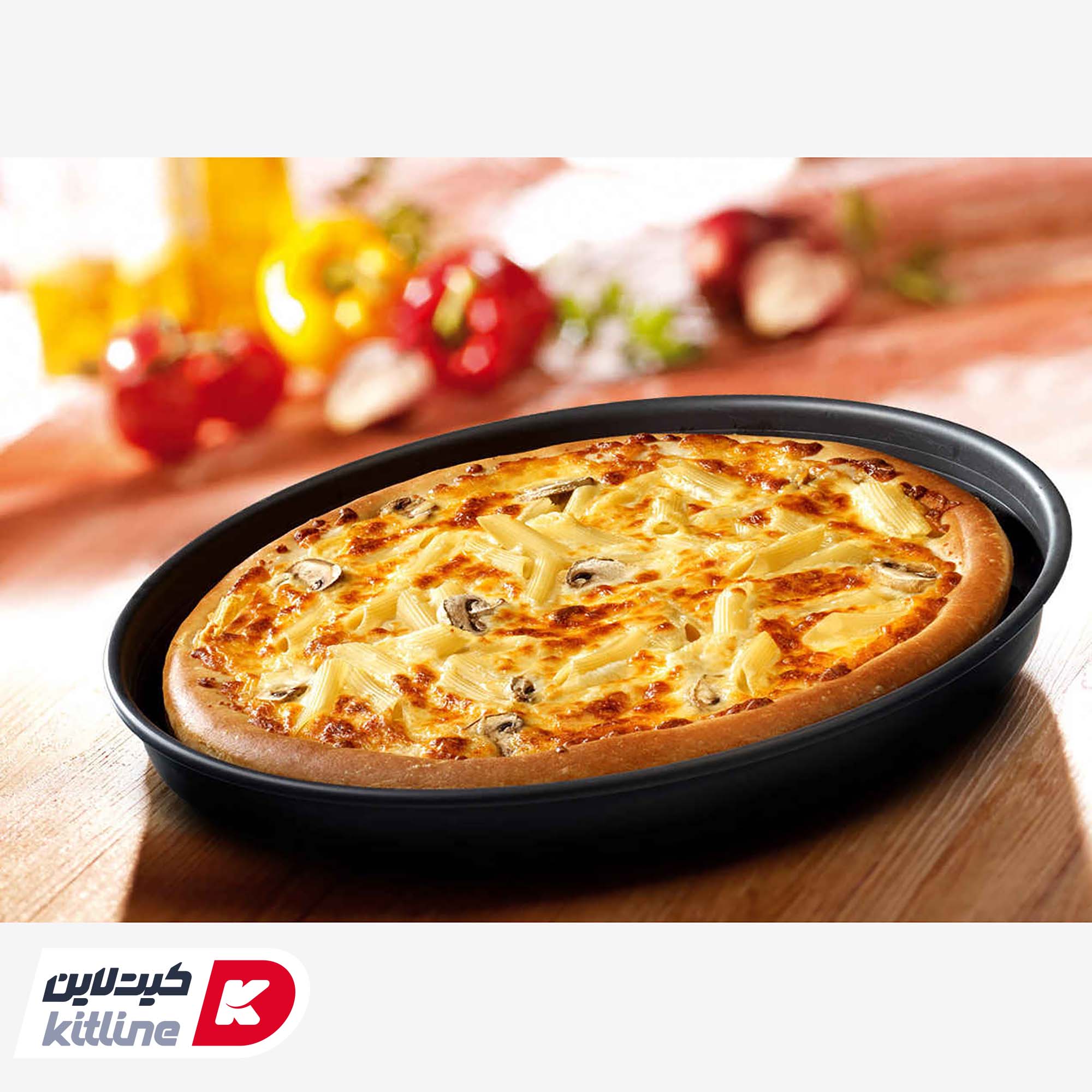 - برند: این محصول از برند کیچنتک (Kitchentech) است و برای پخت پیتزاهای آمریکایی و انواع پیتزاهای ضخیم و عمیق ایدهآل است.
