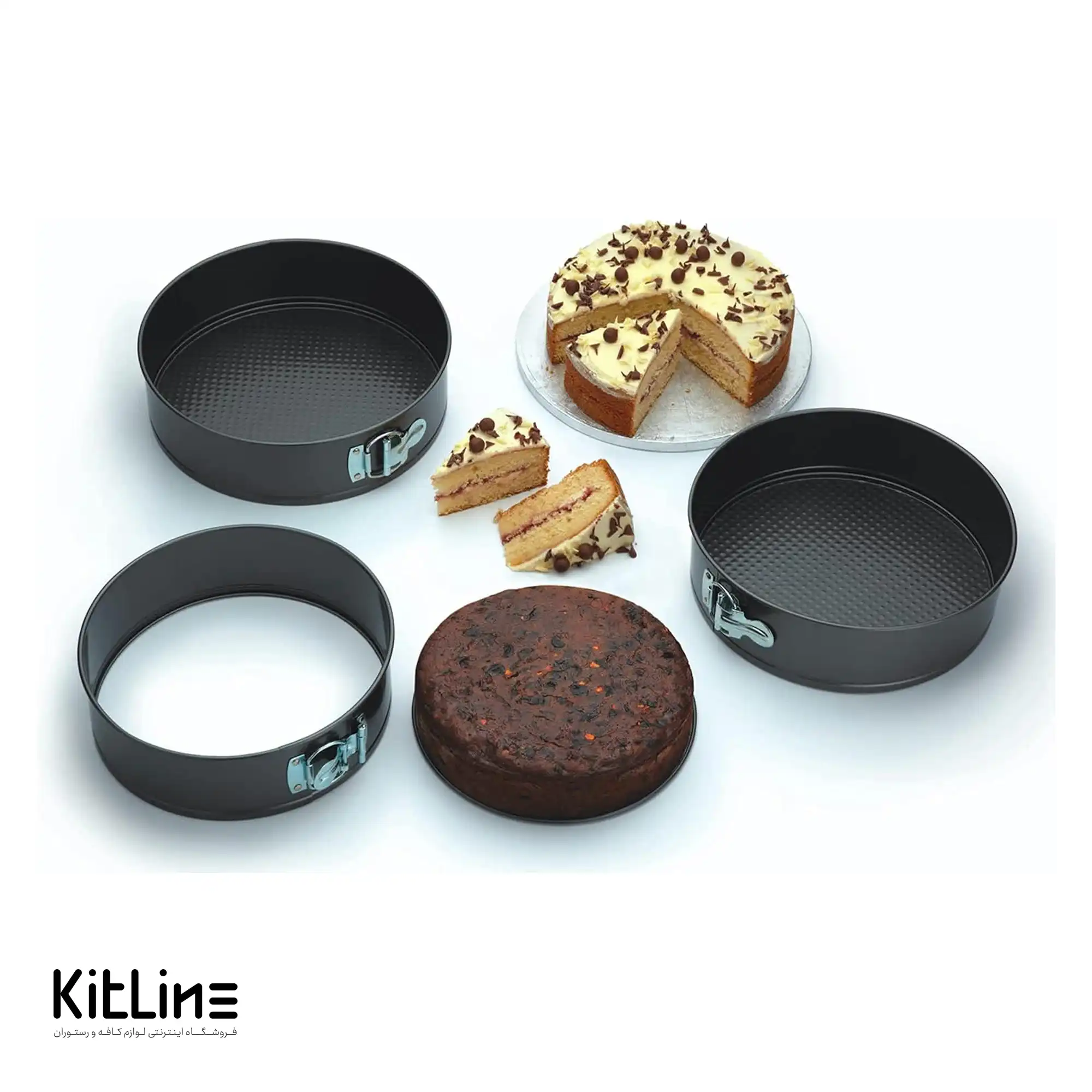 این ست قالب کیک یکی از لوازم کیک و شیرینی می باشد. این محصول شامل سه قالب گرد با قالب کوچک با قطر ۲۳ سانتیمتر و ارتفاع ۷ وضخامت ۰.۶ سانتیمتر ،قالب متوسط با قطر ۲۵.۵ و ارتفاع ۷ سانتیمتر و ضخامت ۰.۶ سانتیمتر و قالب بزرگ با قطر ۲۷ سانتیمتر ارتفاع ۷ سانتیمتر و ضخامت ۰.۶است.  این محصول برای پخت انواع کیک، از جمله چیزکیک، کیک میوه‌ای، موس کیک و کیک‌های چندطبقه، مناسب است.