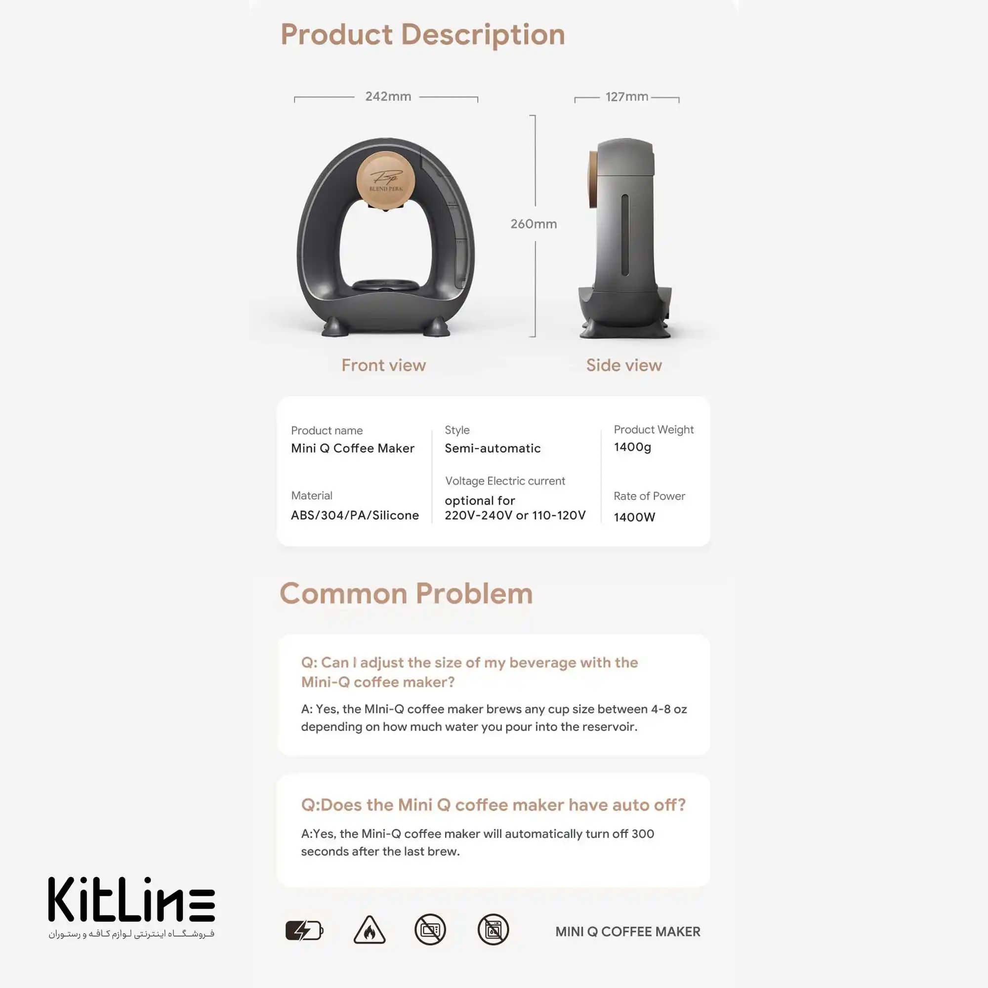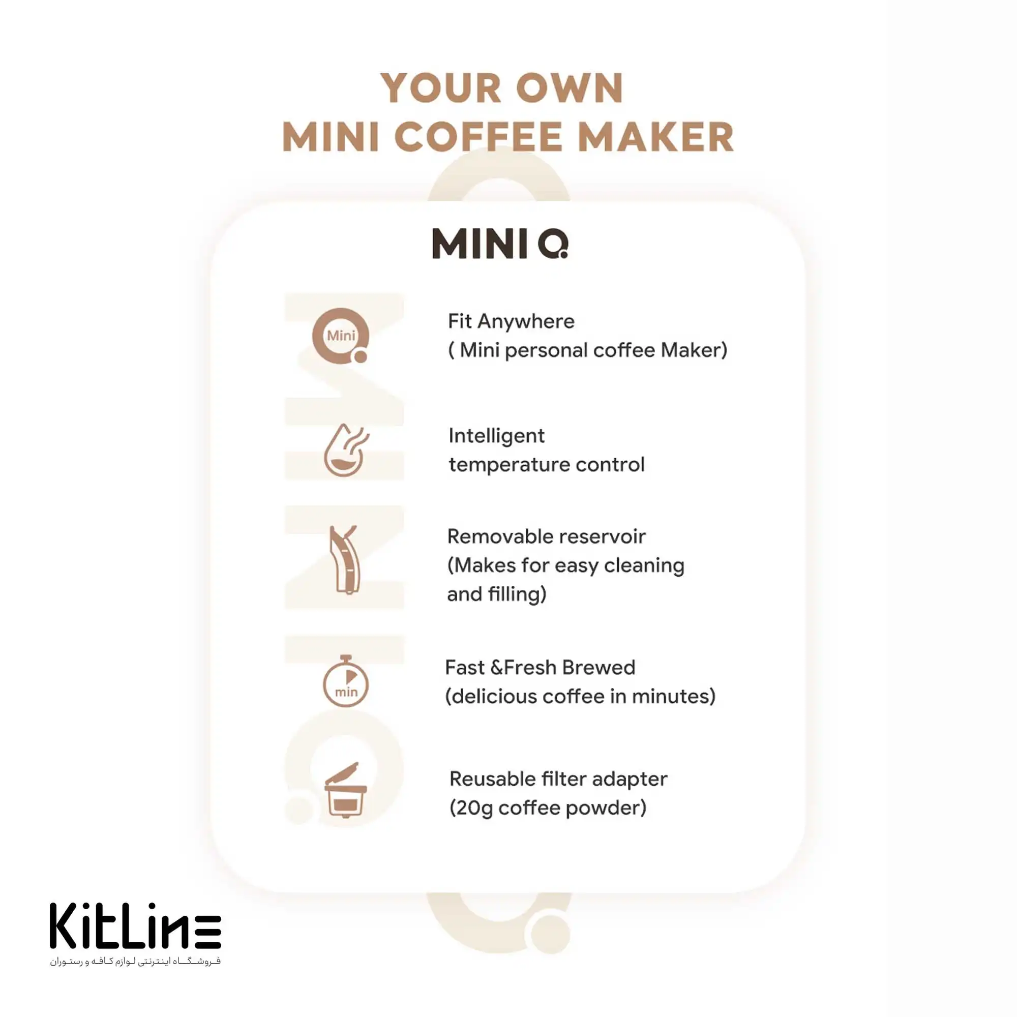 - کیفیت قهوه بالا: با امکان کنترل دما و استفاده از قهوه آسیاب متوسط و درشت، دستگاه Mini Q قهوهای با کیفیت و طعم عالی ارائه میدهد که مشتریان را جذب میکند.