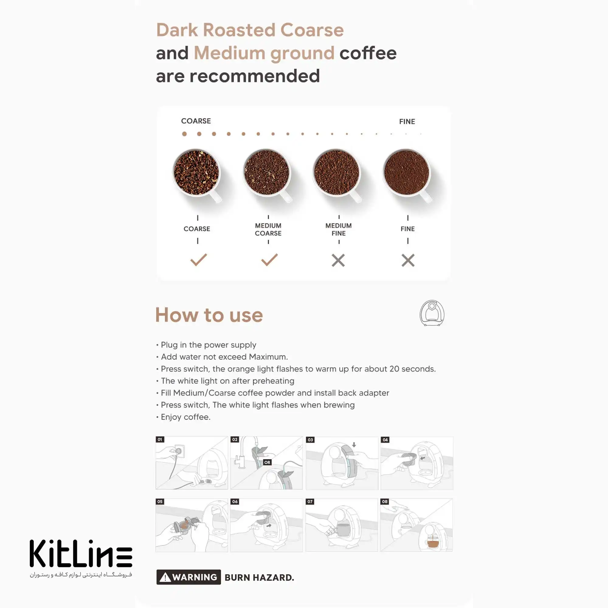 - قهوه آسیاب متوسط و درشت: برای بهترین نتیجه، قهوه باید به صورت آسیاب متوسط یا درشت استفاده شود.