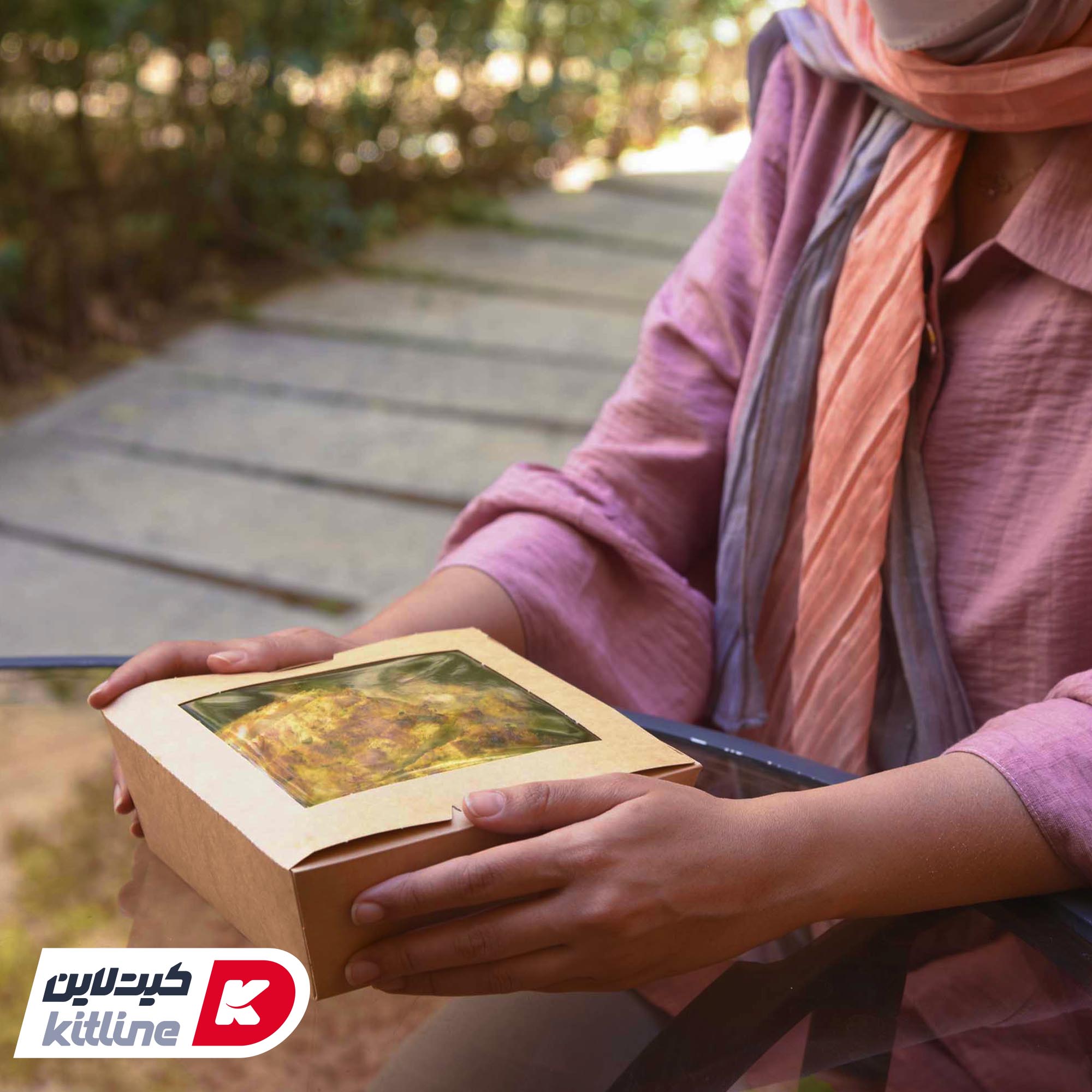 ویژگی‌های لانچ باکس یکبار مصرف کاغذی با در طلقی ۱۸×۱۸ سانتیمتری: