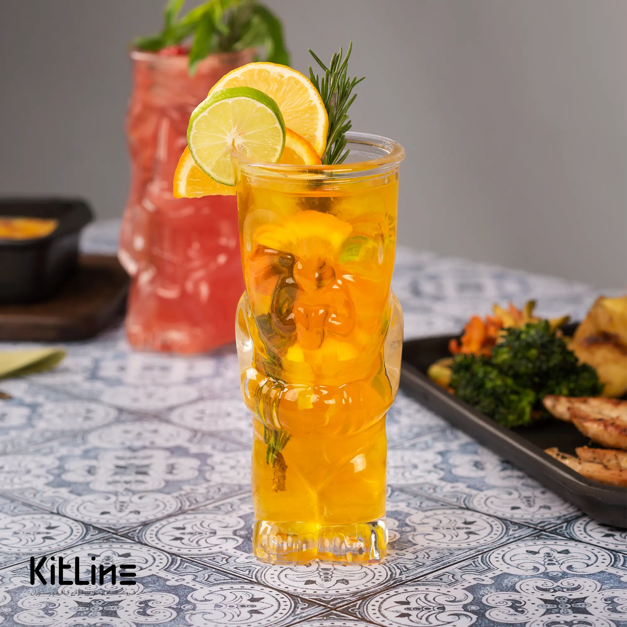 از آنجایی که این لیوان شفاف است، رنگ نوشیدنی که داخل آن میریزید، چهره تیکی را به طور واقعی روشن میکند و تمام جزئیات نمایان میشودد. این تیکی شیشهای ۲۵۰ میلیلیتر گنجایش دارد و لبهای پهن در لبه دهانه دارد که میتوانید تزئینات اضافی را روی آن قرار دهید.