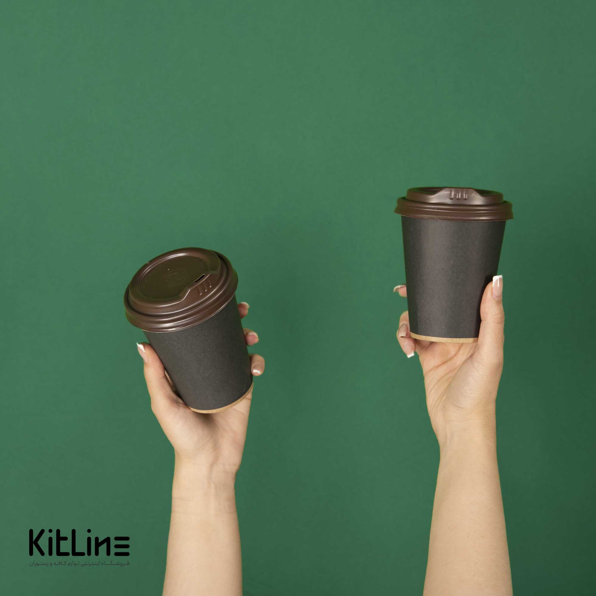 لیوان کاغذی کرافت یکبار مصرف دو جداره ۲۴۰ میلی لیتری همراه درب مشکی (کارتن ۴۰۰ عددی)