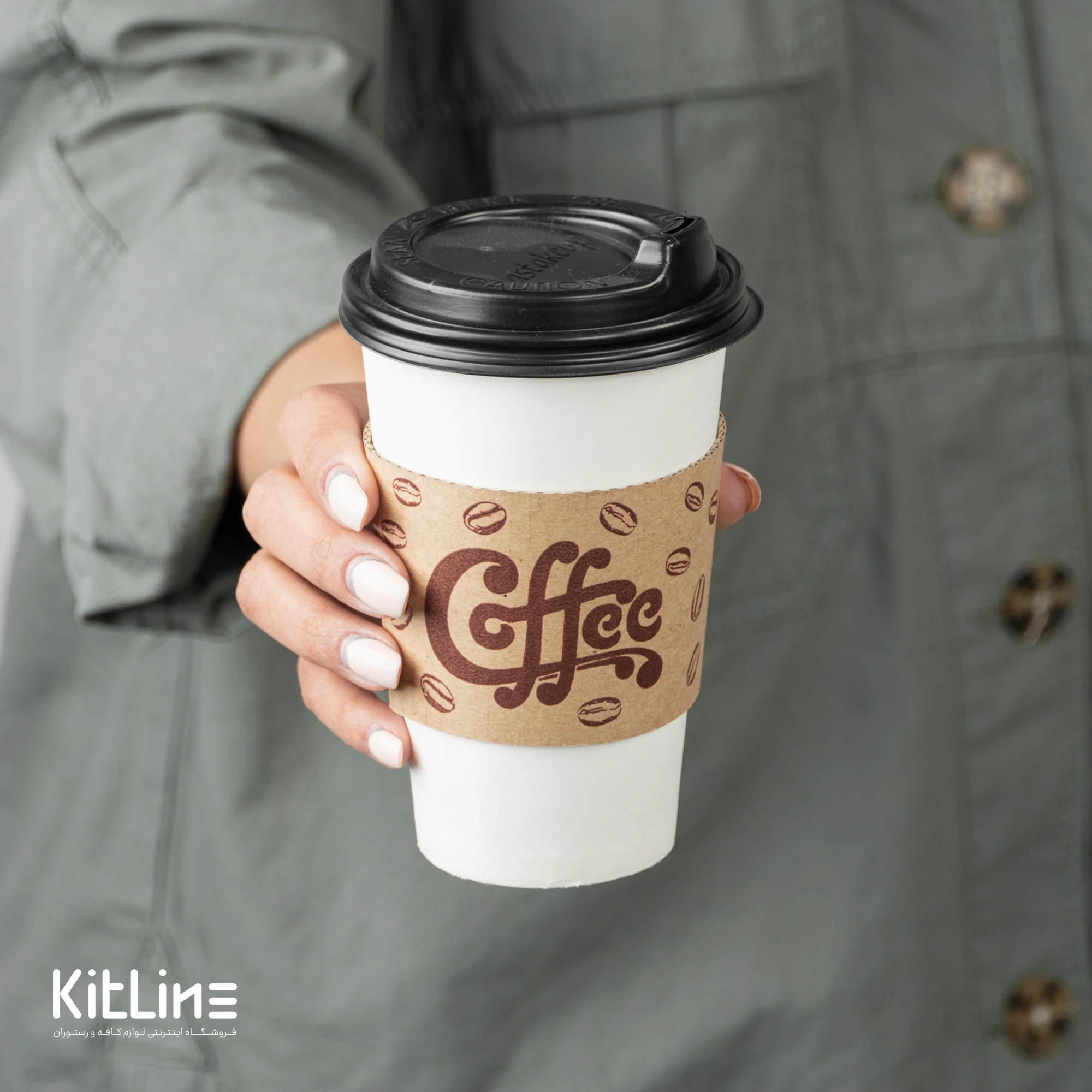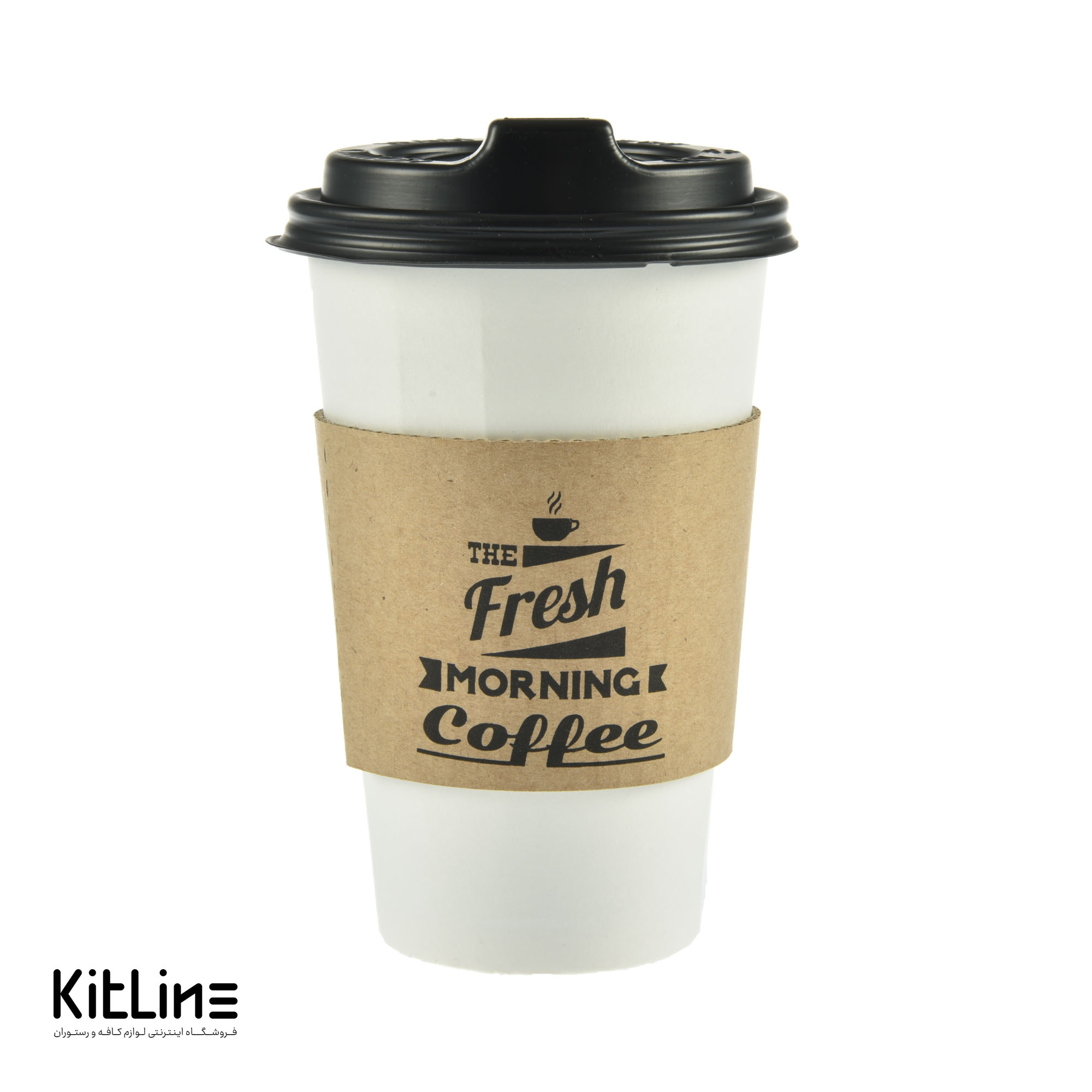 ليوان کاغذی تک جداره سفيد ۴۸۰ml همراه با درب مشکی و اسليو: