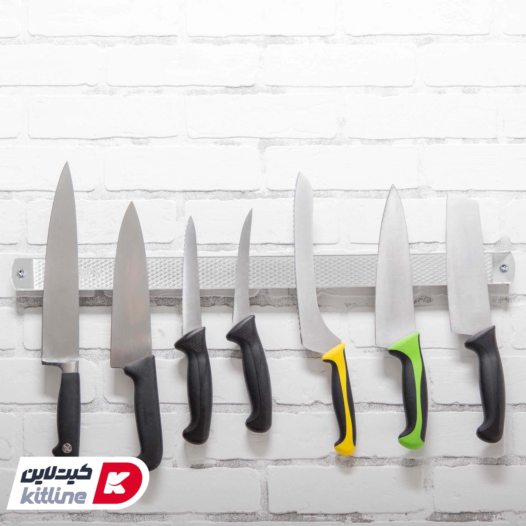 رعایت نظم و بهداشت در آشپزخانههای صنعتی و رستورانی بسیار کلیدی و ضروریست. از طرفی ابزار مورد استفاده باید به راحتی در دسترس باشد. نگهدارنده چاقو آهنربایی در نظم بخشیدن و حفظ بهداشت چاقوها در آشپزخانه به پرسنل کمک می کند و باتوجه به در دسترس بودن سریع چاقوها سرعت کار را بالا میبرد. این نگهدارنده آهنربایی به دیوار پیچ می شود و از قسمت تیغه، چاقو به آهن ربا وصل می شود. از نگهدارنده چاقو در آشپزخانه، قصابی و … می توان استفاده کرد.