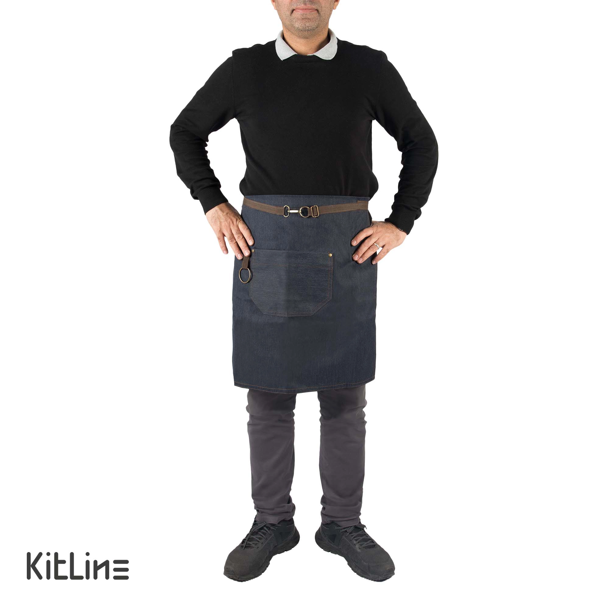 - شیک و خاص: رنگ جین آبی و بند قهوهای این نیم پیشبند، ظاهری شیک و منحصر به فرد به آن بخشیده و شما را در هر کافه و رستورانی متمایز میکند.
