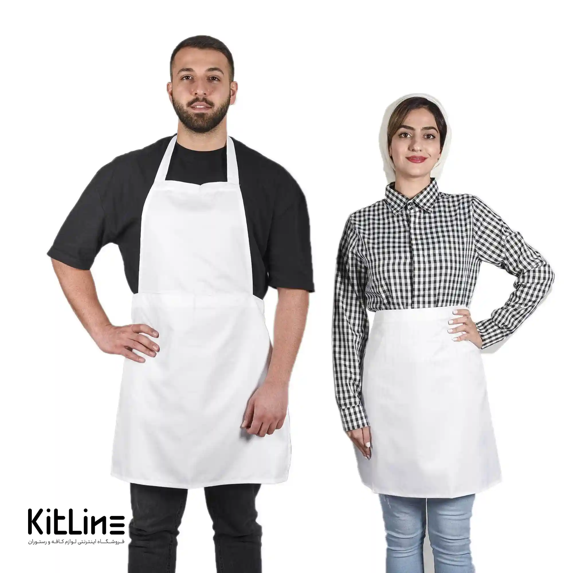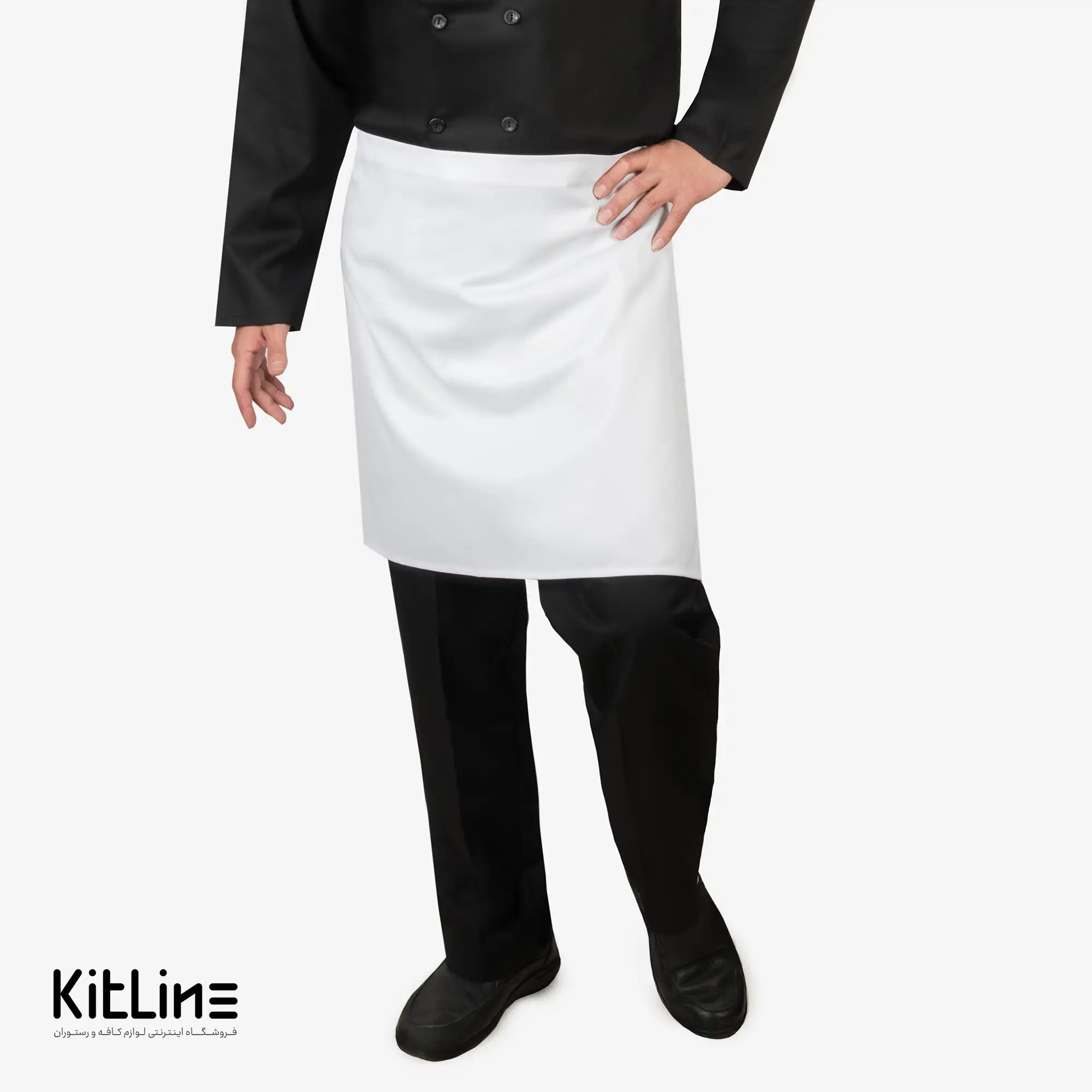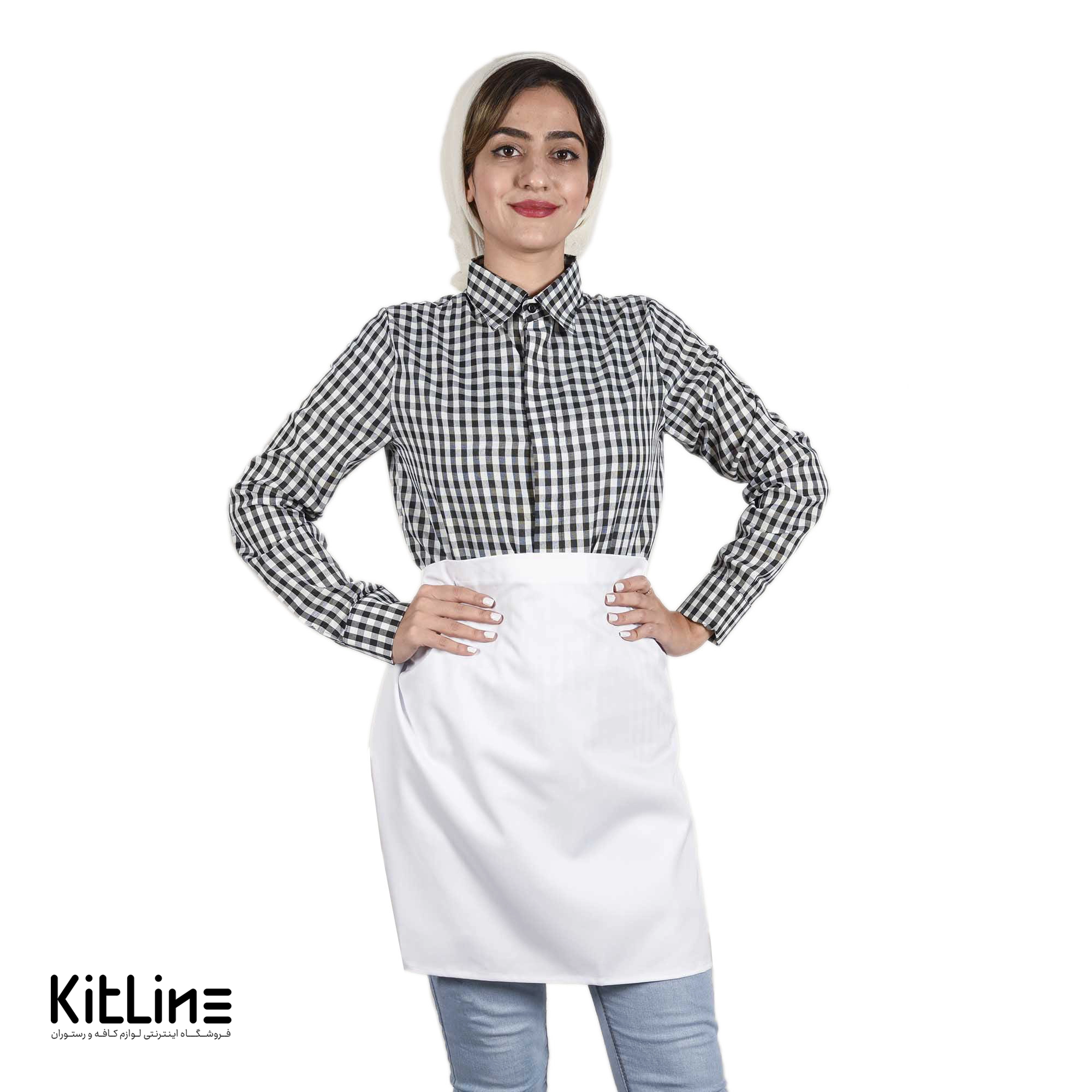 نیم پیشبند ساده سفید با جنس ترگال یک انتخاب عالی برای استفاده در کافه‌ها و رستوران‌ها است.