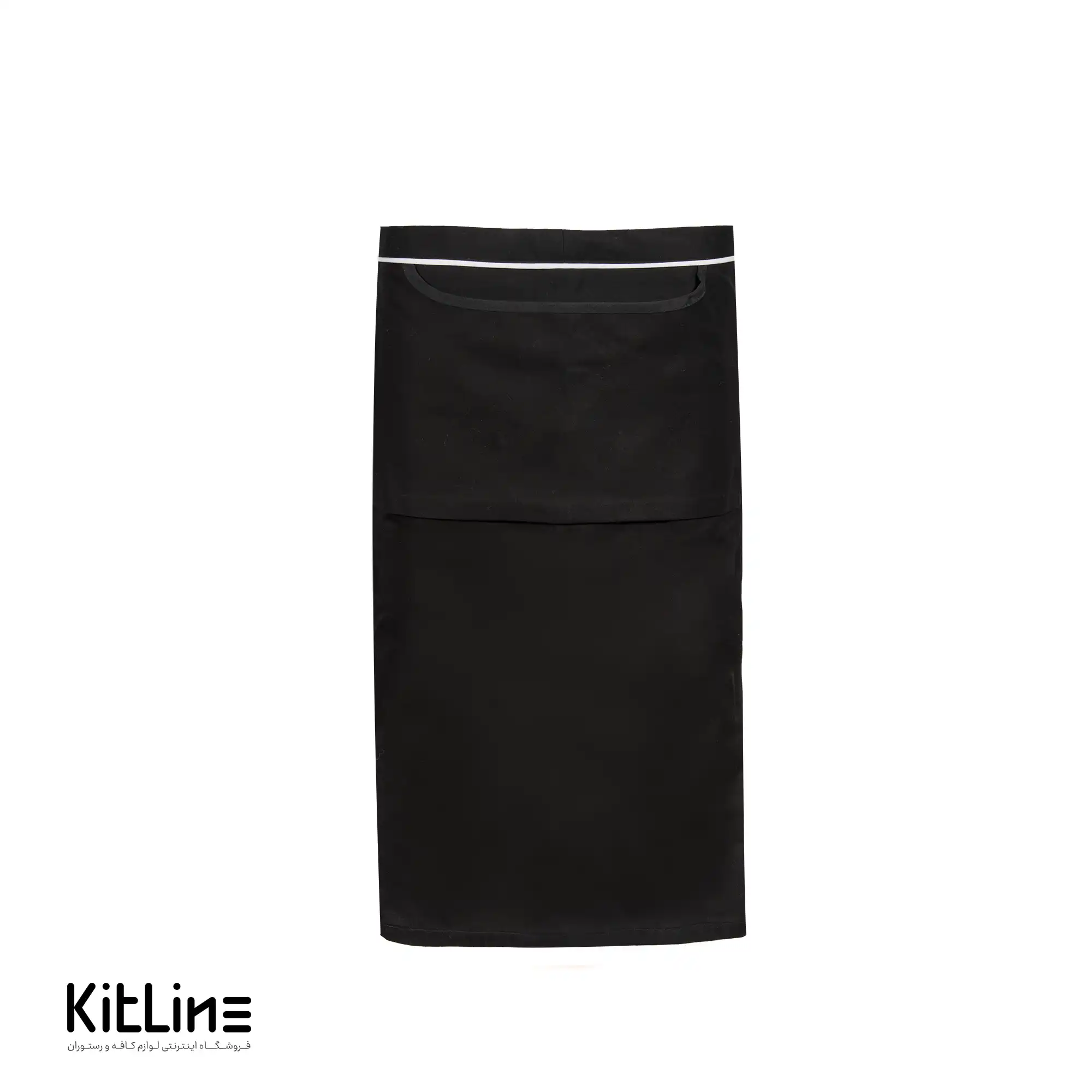 نیم پیشبند مشکی با نوار سفید، با ترکیب کیفیت، کارایی، زیبایی و قیمت مناسب، انتخابی ایده‌آل برای کافه و رستوران‌ها و کلیه مشاغلی است که نیاز به ظاهری شیک و حرفه‌ای برای پرسنل خود دارند.