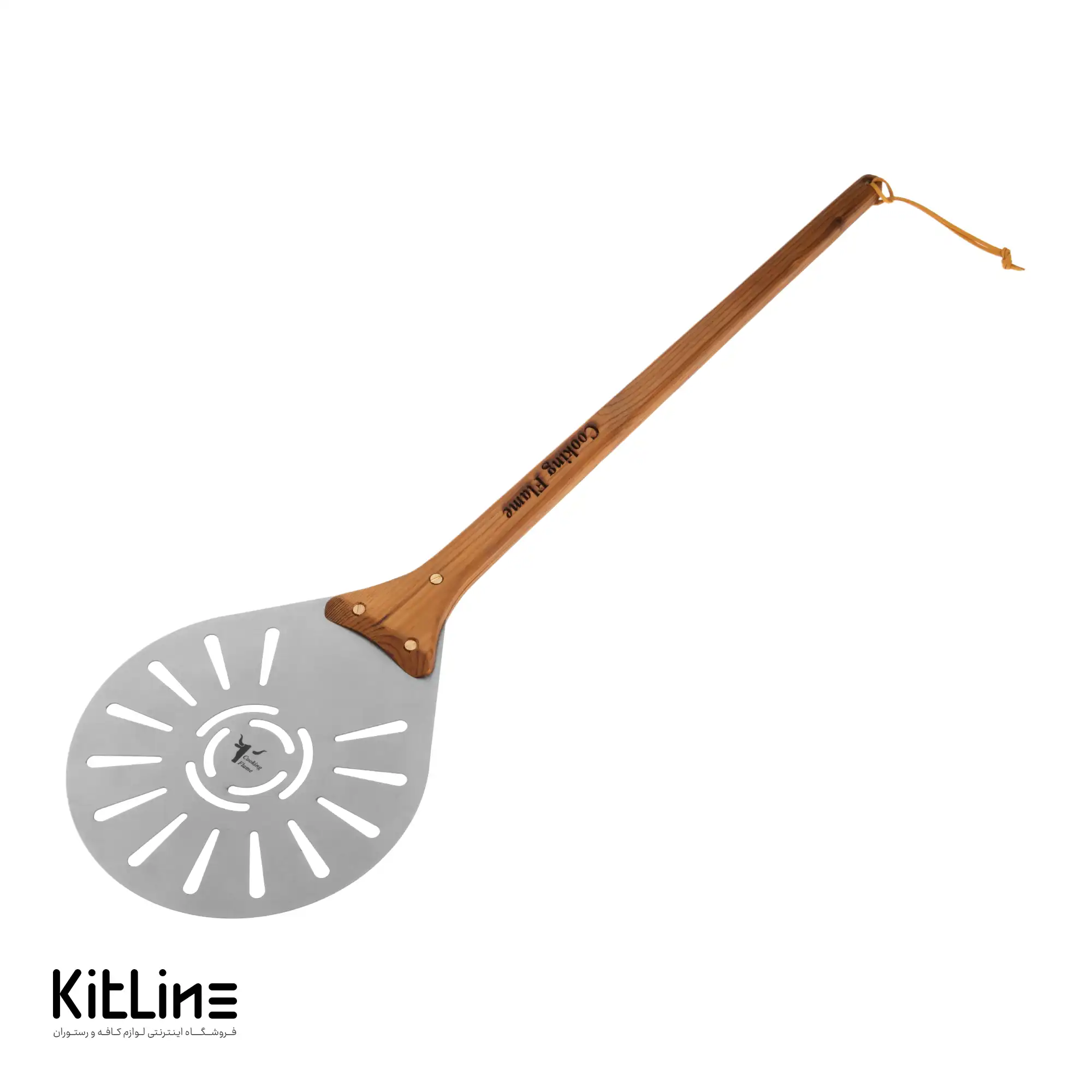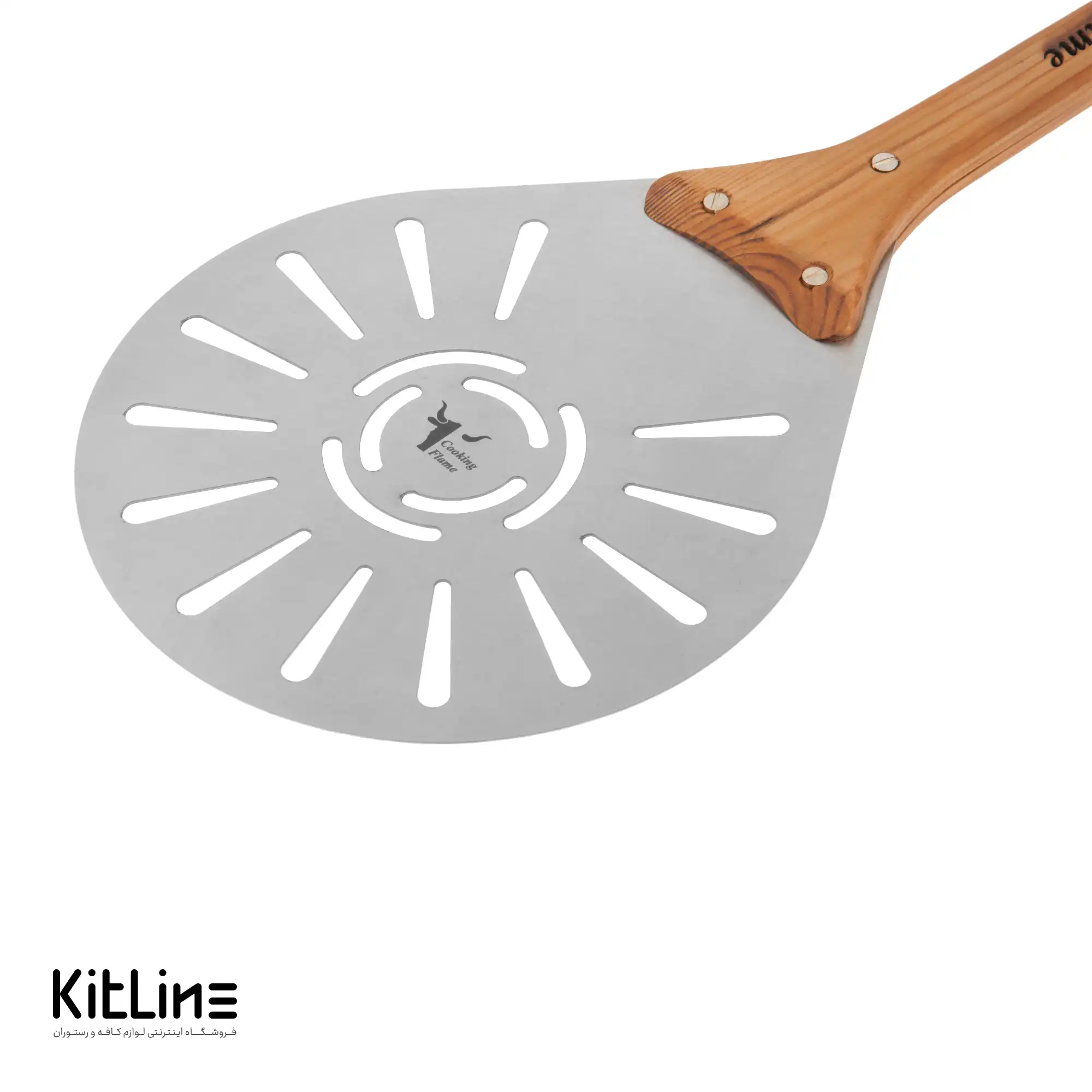 - ویژگی: تیغه پارو دارای سوراخهای متعدد برای تکاندن آرد اضافی از زیر پیتزا.