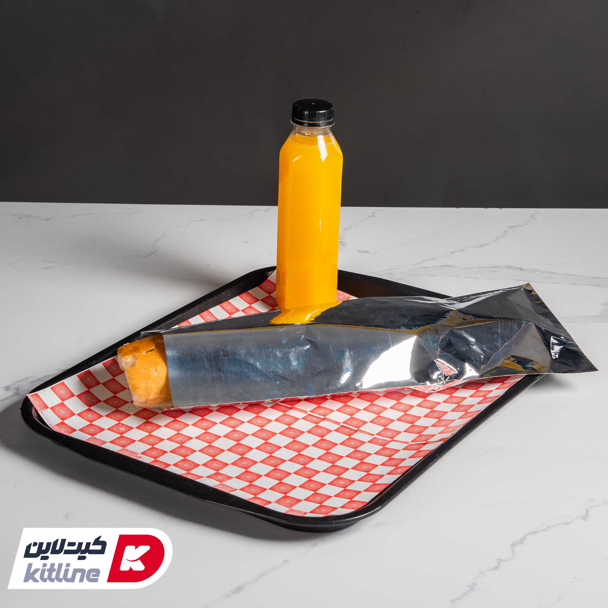 - جنس متالایز این کاغذ و بسته بودن دور تا دور آن باعث میشود تا روغن و سس به بیرون نشتی نداشته باشد و در صورت خارج شدن محتویات ساندویچ از داخل نان به بیرون نریزد.