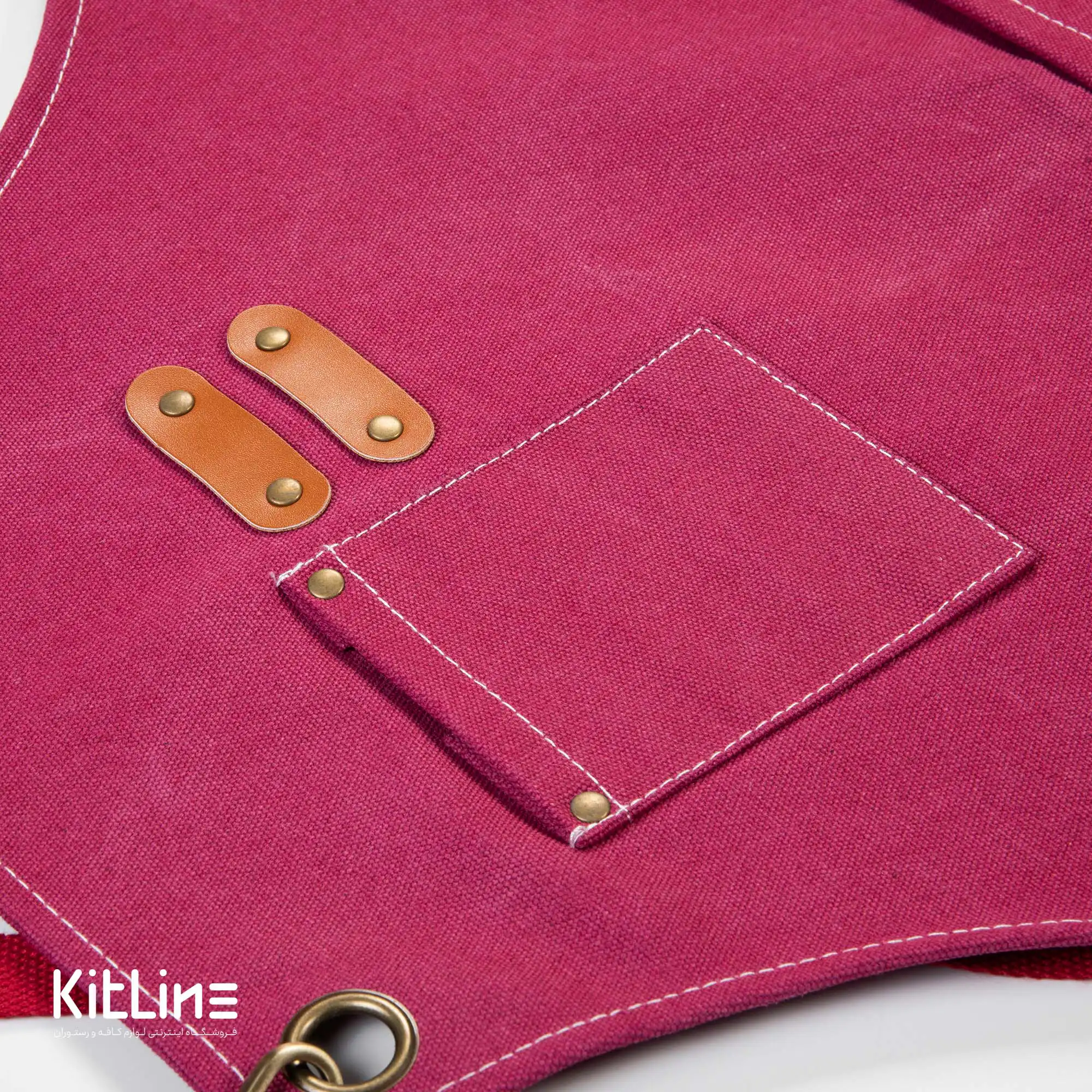 • طراحی: دو جیب بزرگ در پایین پیشبند برای نگهداری ابزار و لوازم کار، یک جیب کوچک روی پیشبند برای نگهداری وسایلی مانند تلفن همراه