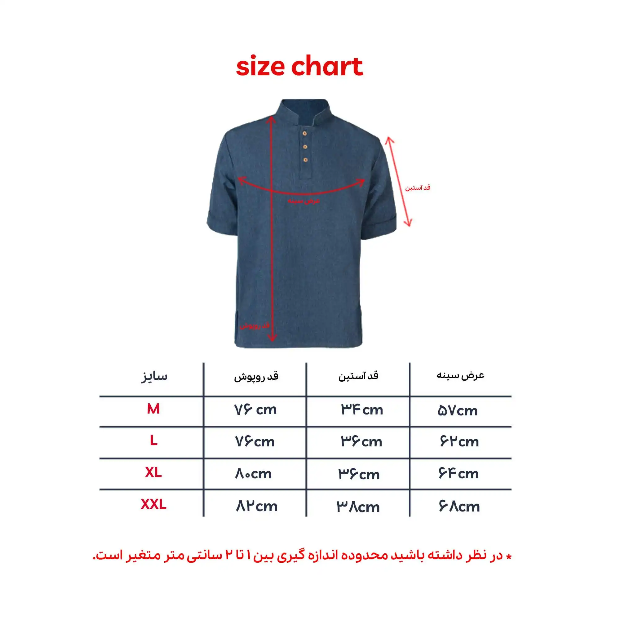 - موجود در سایزهای مختلف: پیراهن آستین کوتاه سرمه ای سه دکمه پوشاکو در سایزهای M، L، XL و XXL موجود است. به شما این امکان را میدهد تا برای تمامی پرسنل خود، با هر فرم بدنی، سایز مناسب را انتخاب کنید.