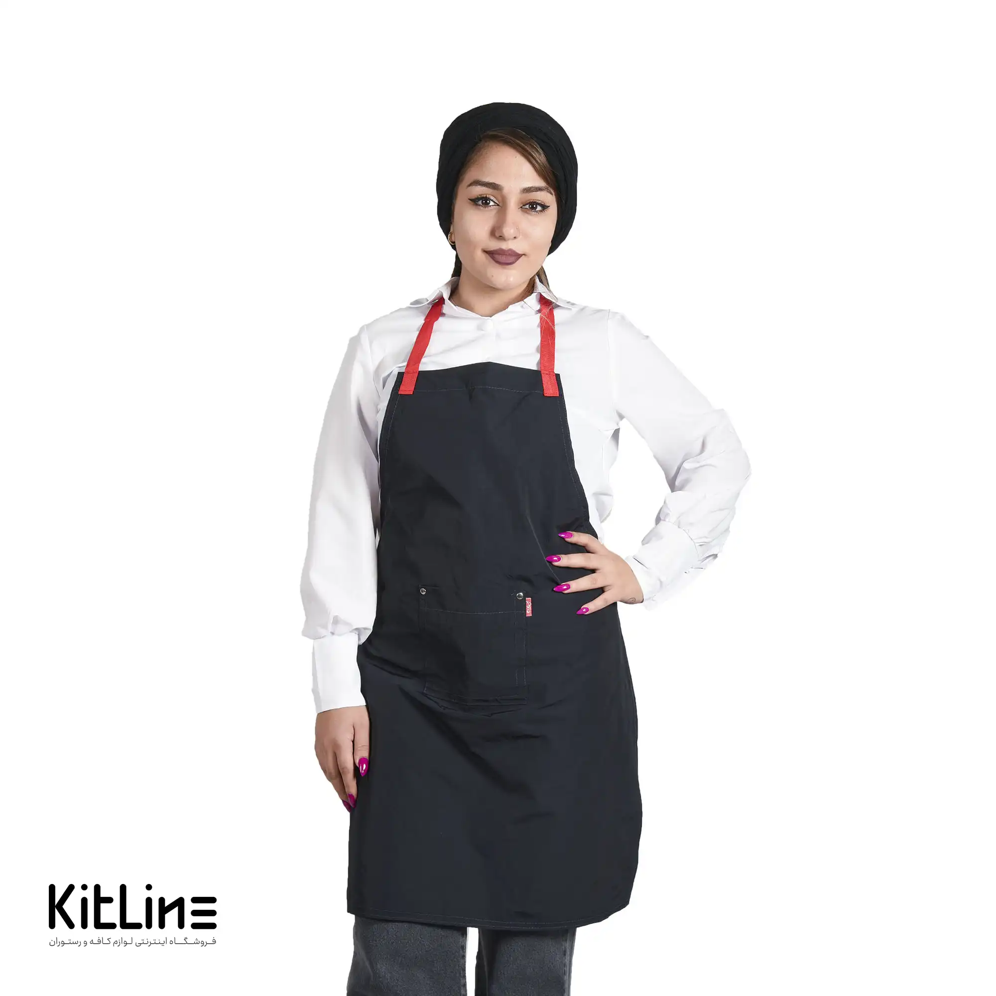 • یک جیب جادار: این پیشبند دارای یک جیب جادار روی سینه است که فضایی مناسب برای قرار دادن لوازم ضروری مانند دستمال کاغذی، خودکار فراهم می‌کند.