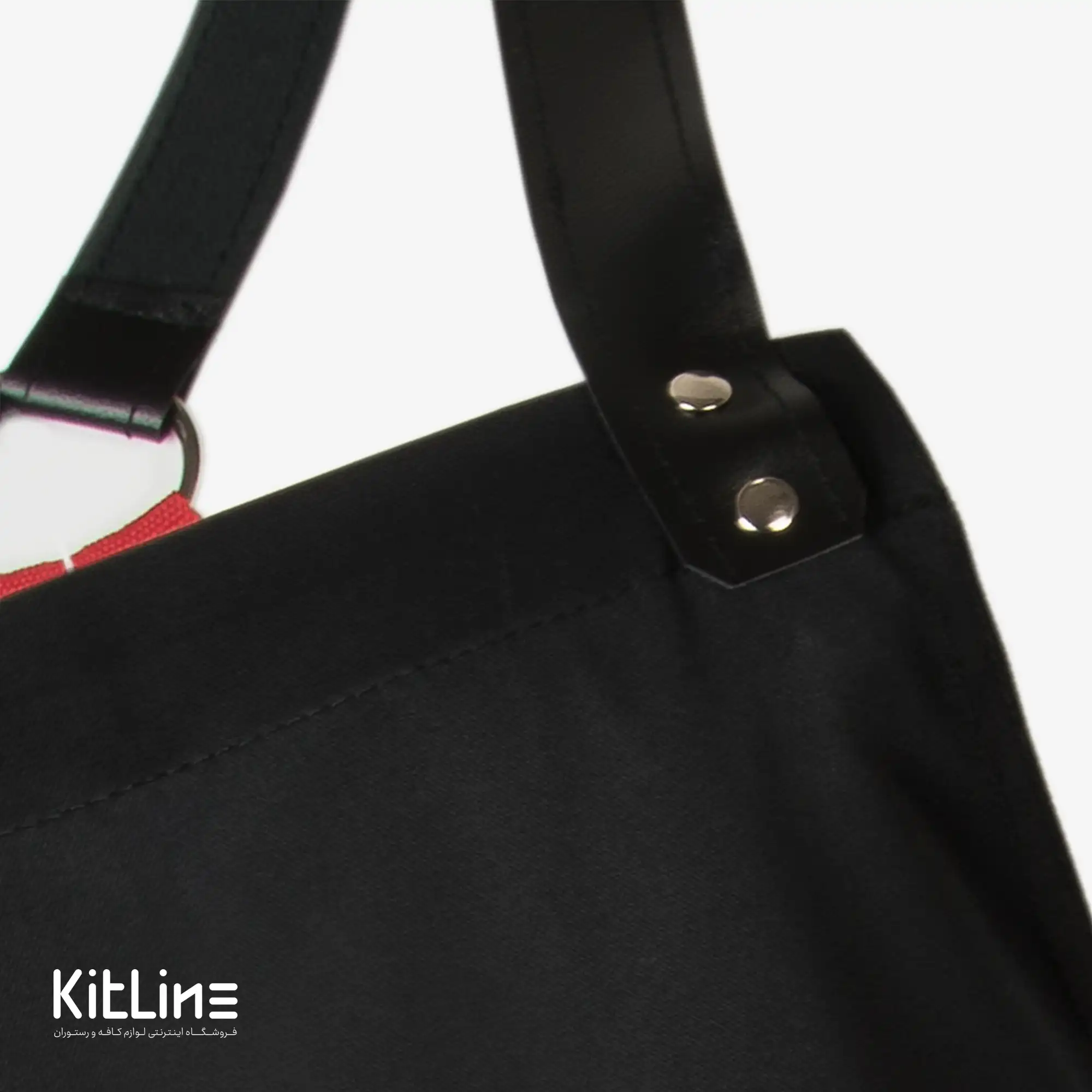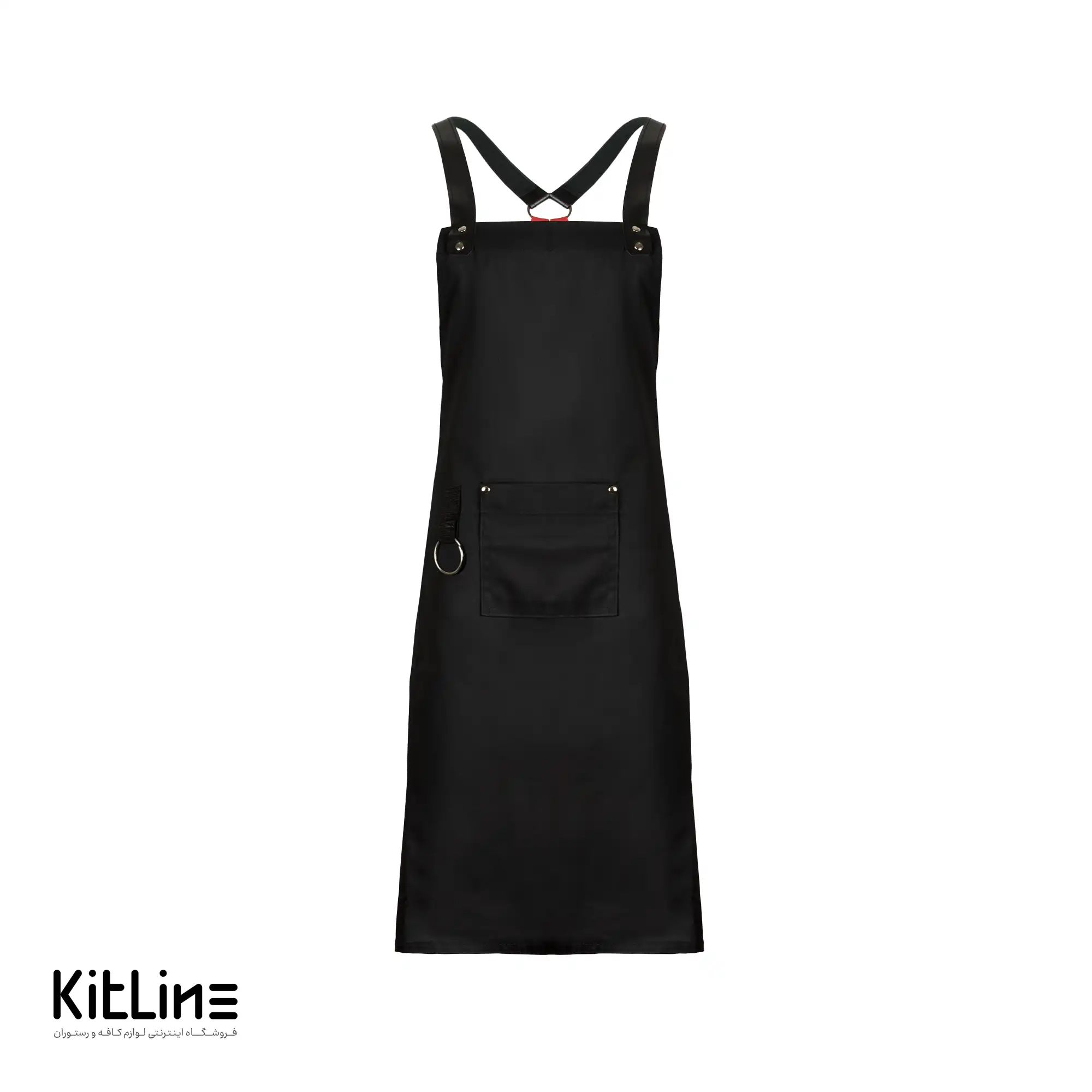 پیشبند تک جیب مشکی با بند مشکی و قرمز