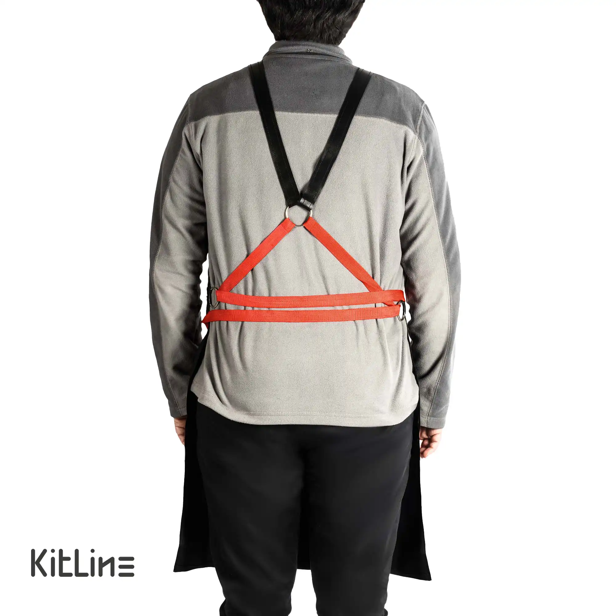 - بند قابل تنظیم: بند مشکی و قرمز این پیشبند قابل تنظیم است، بنابراین میتوانید به راحتی طول آن را تنظیم کرده و با راحتی بپوشانید.