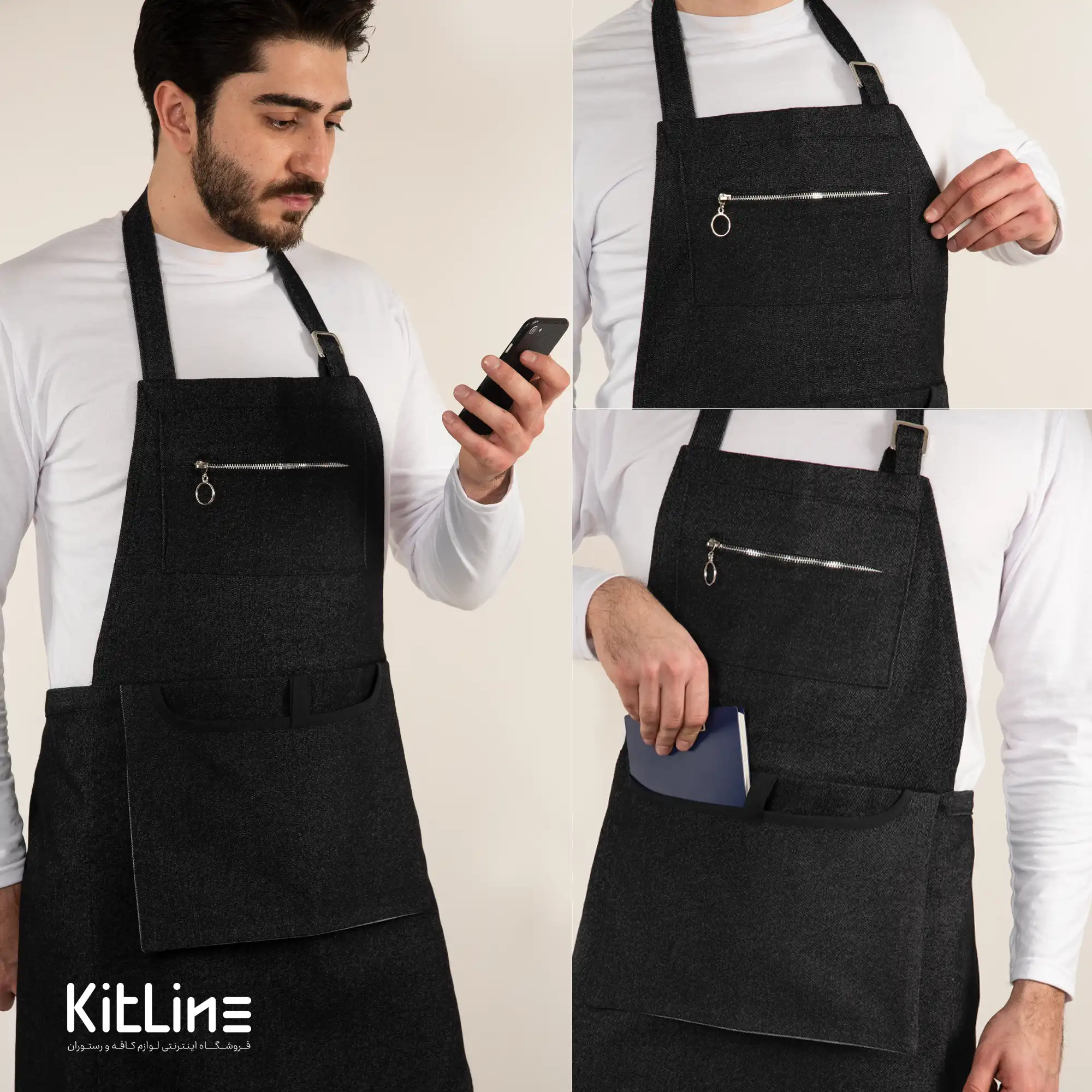 - ظاهری شیک و مدرن: این پیشبند با طراحی ساده و رنگ مشکی، ظاهری حرفهای به شما و کارکنانتان میدهد.