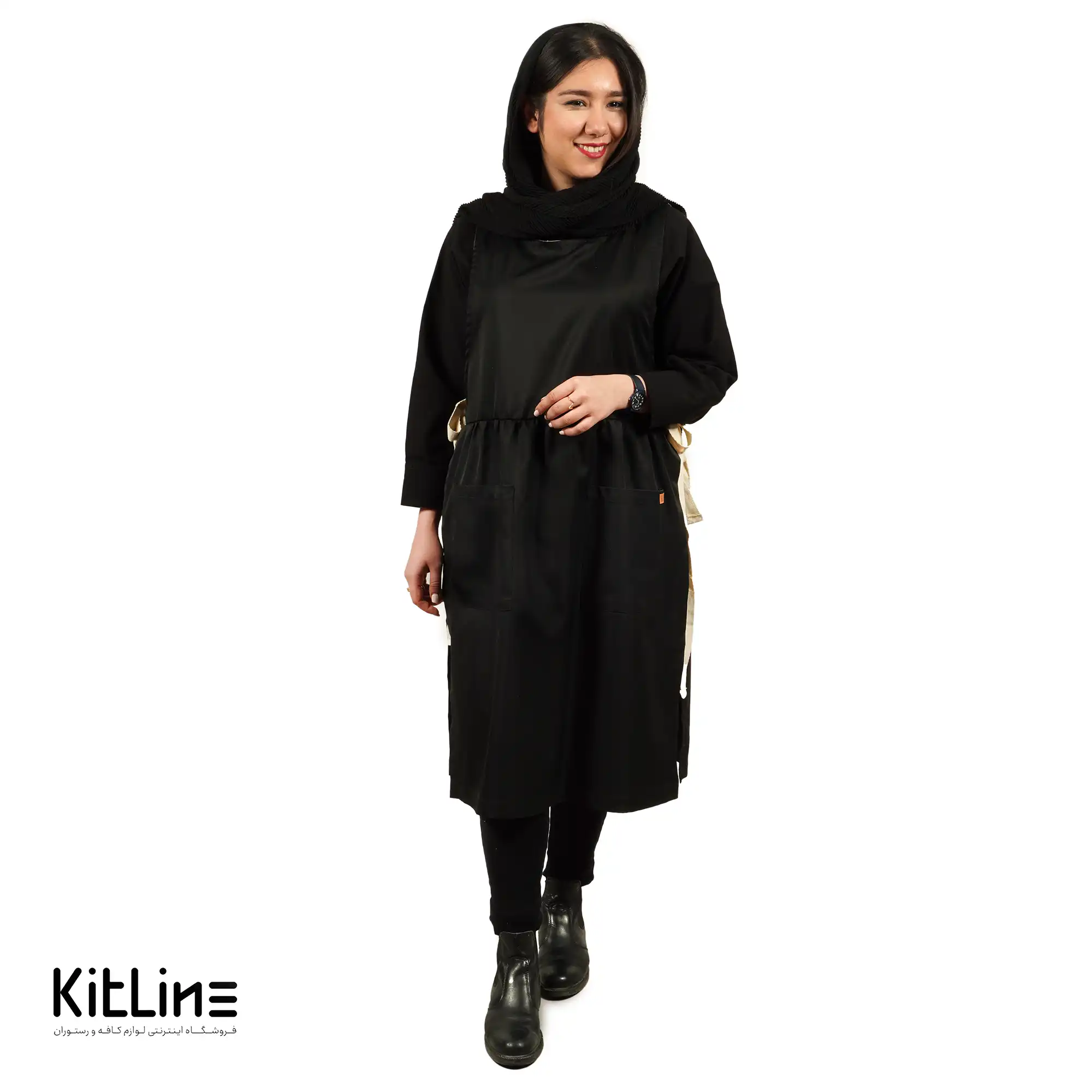 پیشبند چین دار زنانه مشکی برند سارا فرم